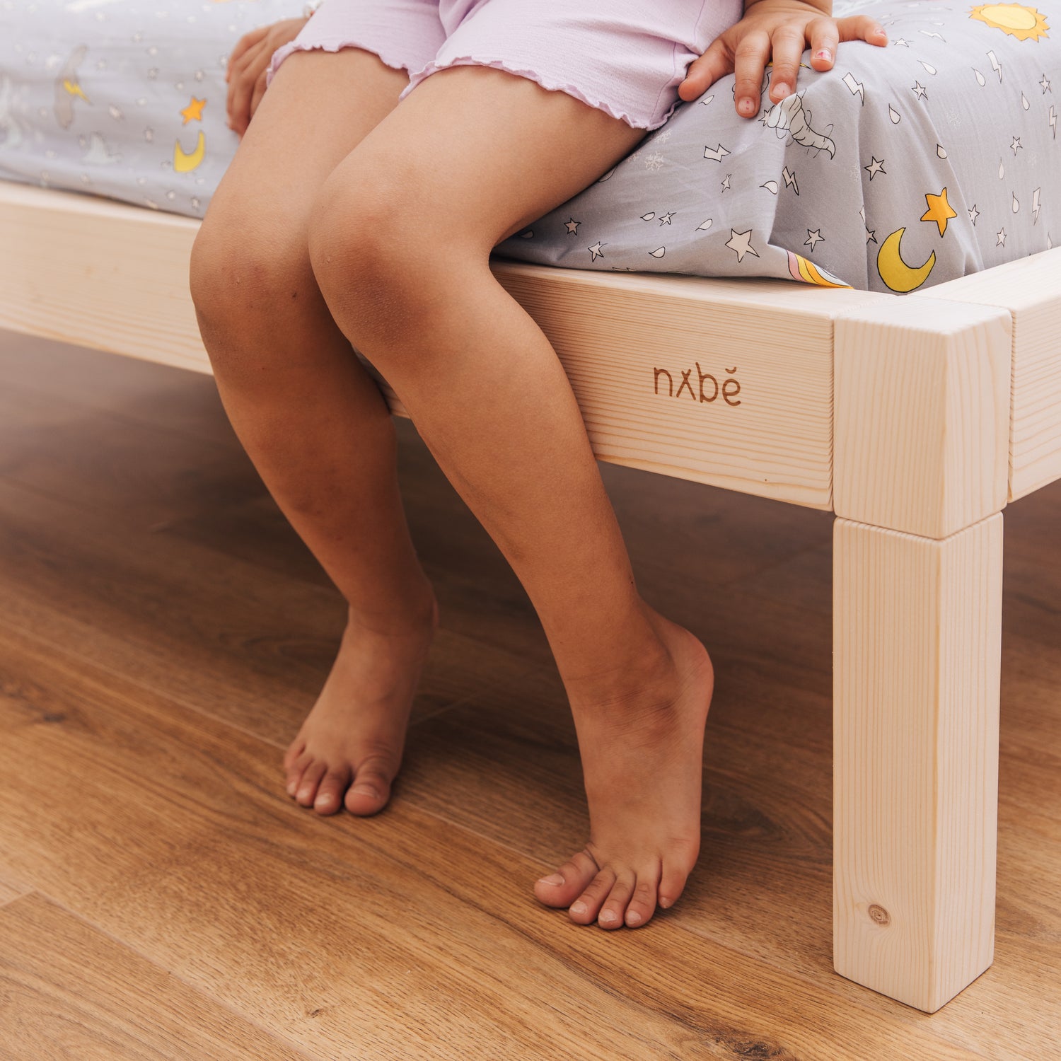 Adattabilità e crescita: I nostri Kit zero+ permettono di passare da un letto Montessori, ideale per i più piccoli, a un letto rialzato con PiedOni di 23 cm, perfetto per i bambini più grandi. Questa trasformazione non solo supporta l'autonomia e l'indipendenza tipica della filosofia Montessori, ma offre anche una soluzione pratica e di lunga durata per la cameretta.