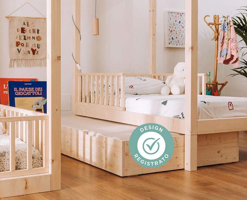 L'eleganza del design italiano si riflette in ogni letto evolutivo, rendendolo un pezzo d'arredo raffinato e versatile. La cameretta Montessori diventa così uno spazio stimolante e accogliente, in cui il bambino può giocare, riposare e imparare in totale sicurezza sperimentando anche il senso del Bello.