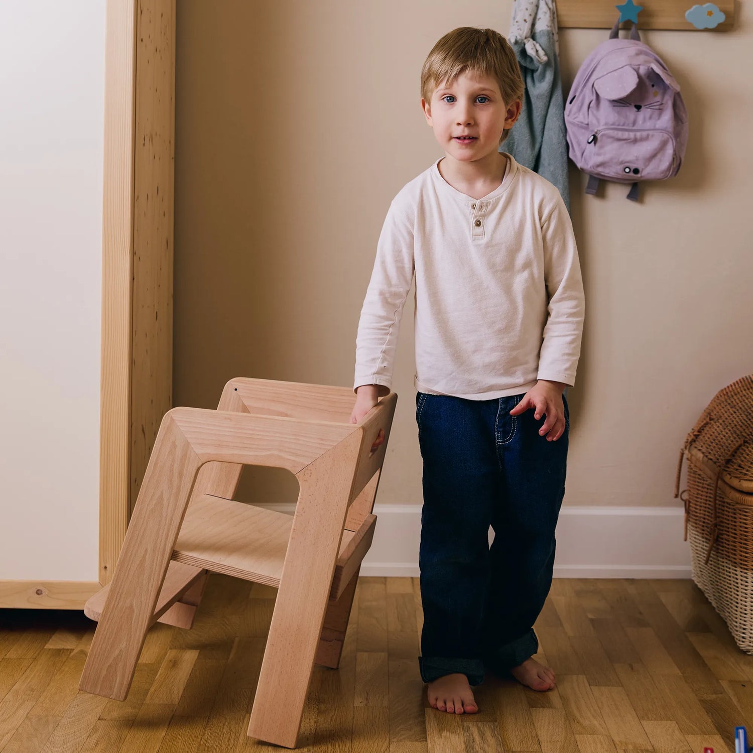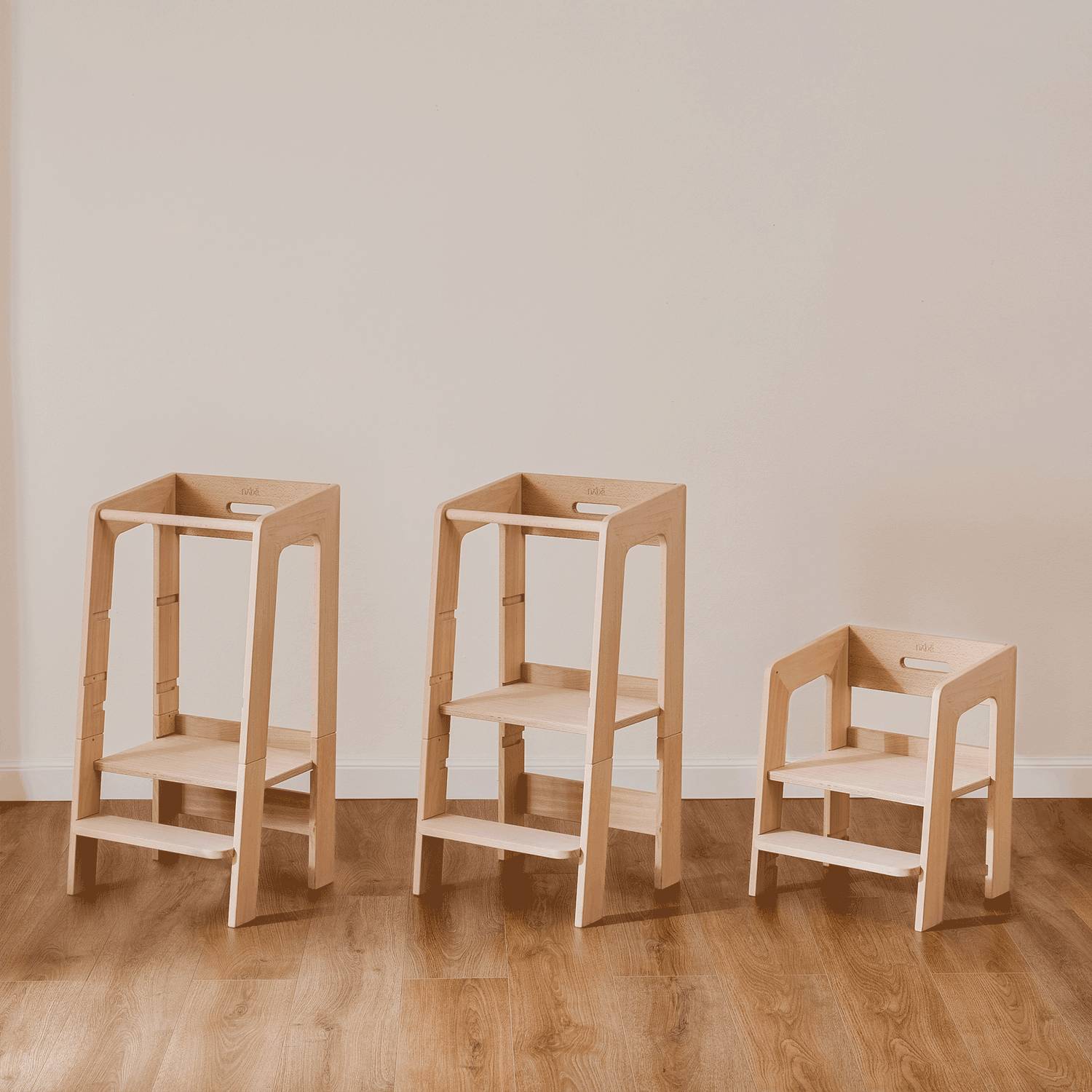 Tre step evolutivi, tre stili, un unico prodotto. La torre di apprendimento Mia si trasforma in scaletta salvaspazio o in una comoda sediolina. Un prodotto evolutivo che accompagna la crescita dei bambini.