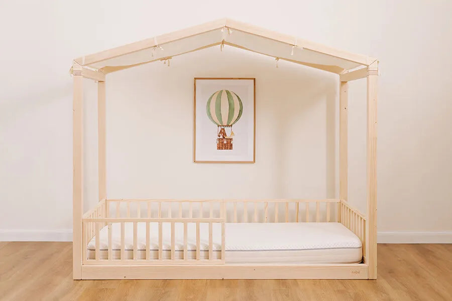 Il letto Montessori Evolutivo zero+ Earth con set sponde completo è il luogo ideale per le prime nanne. Il materasso evolutivo zero+, il coprimaterasso impermeabile, la coppia di cuscini Camomilla e i paracolpi assicureranno il massimo comfort.