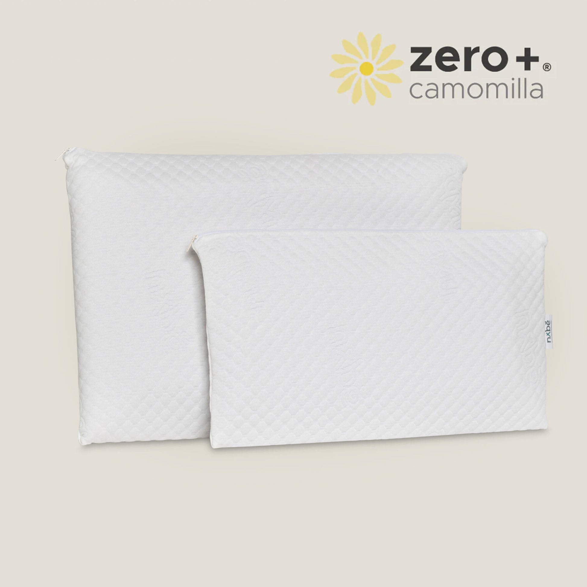Il cuscino zero+ Camomilla è realizzato in Memory Pro, la mousse viscoelastica a lento ritorno di casa nabè che usiamo anche nei nostri materassi. Inoltre, viene lavorato con pregiati oli essenziali di camomilla, per favorire il riposo e il rilassamento.