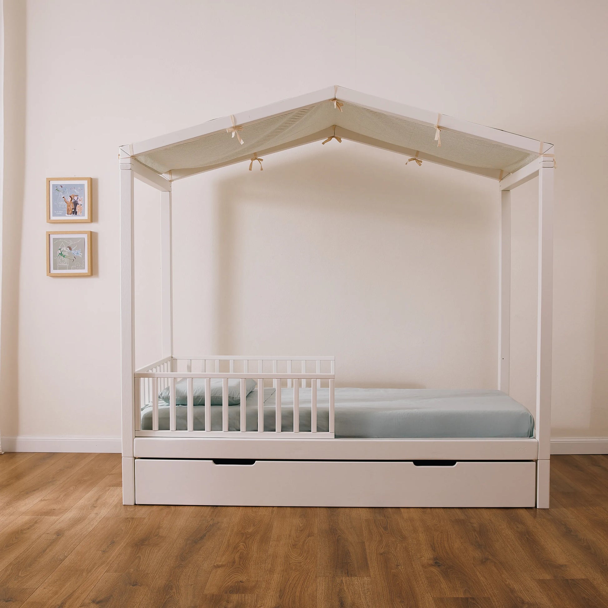Il suo tetto a casetta o baldacchino ricrea uno spazio intimo per i bambini dove trascorrere tempo prezioso, di sonno o di gioco. Le altezze e le forme sono studiate nel dettaglio per trasmettere armonia nella stanza e facilitare la gestione quotidiana.