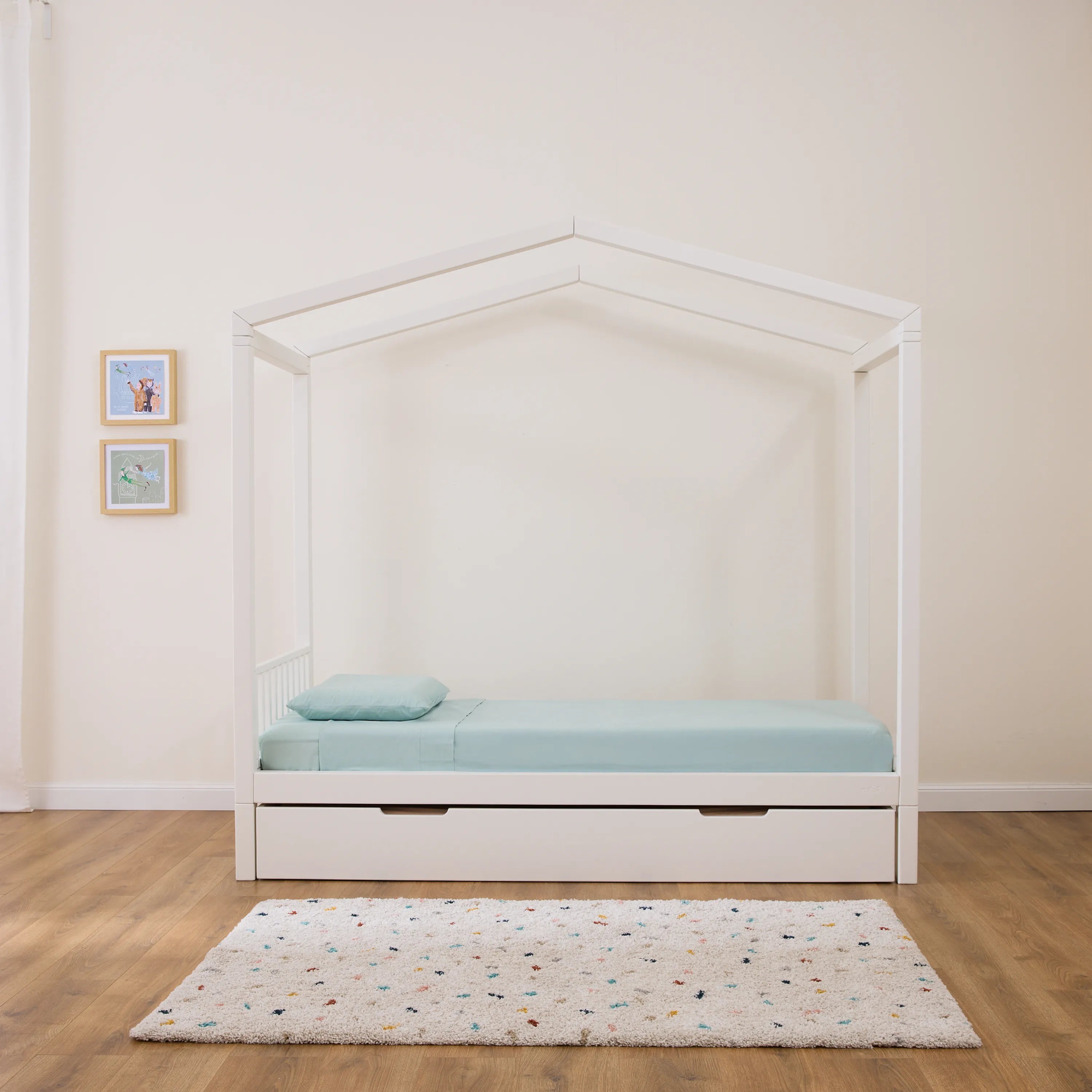 Il suo tetto a casetta o baldacchino ricrea uno spazio intimo per i bambini dove trascorrere tempo prezioso, di sonno o di gioco. Le altezze e le forme sono studiate nel dettaglio per trasmettere armonia nella stanza e facilitare la gestione quotidiana.
