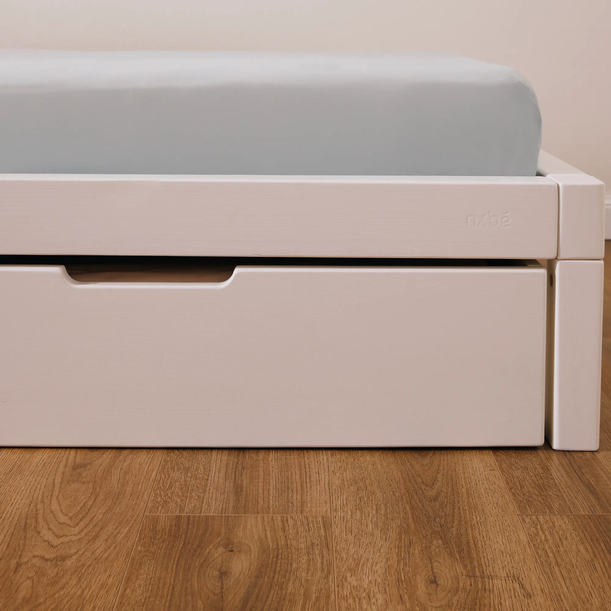 Il Cassettone estraibile di nabè è stato progettato per poter essere integrato in ogni momento su tutta la gamma di letti zero+.