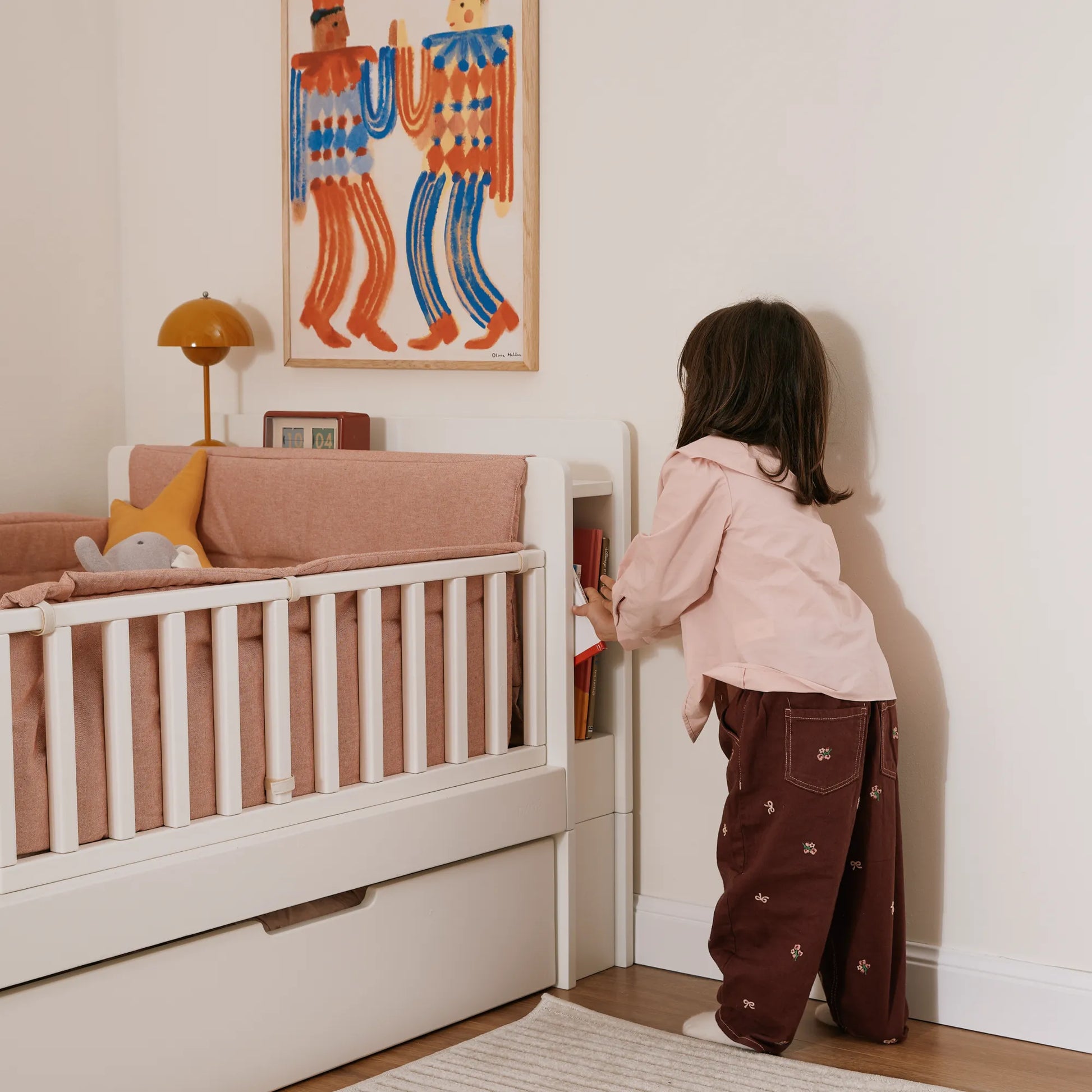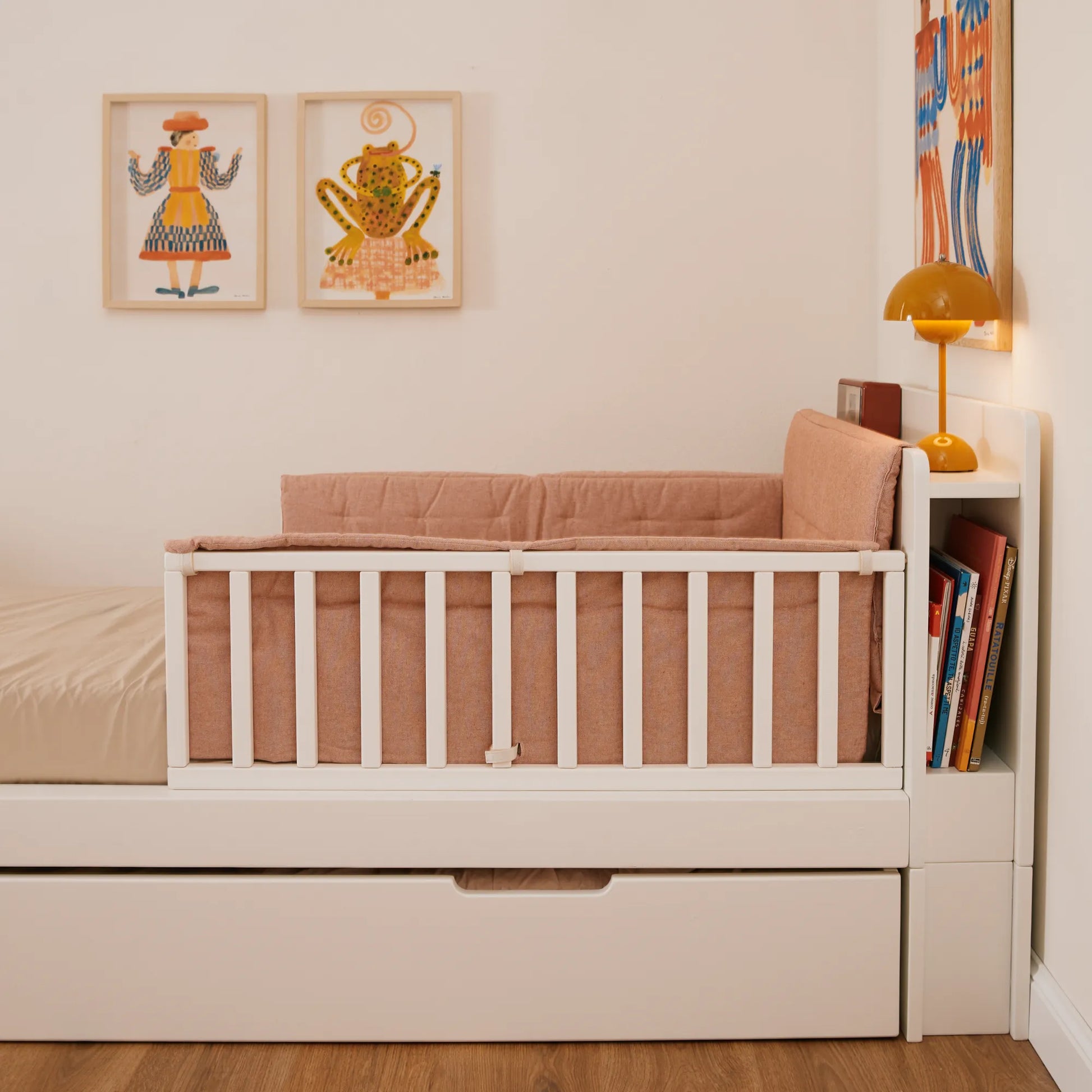Morbido, pratico e sicuro: il Paracolpi Nabè è progettato appositamente per donare un tocco di morbidezza al letto evolutivo zero+ Fun e proteggere i bambini dagli urti, senza ridurre lo spazio nel lettino.