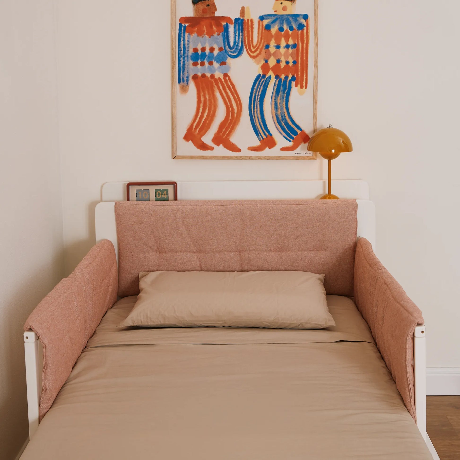 Il paracolpi con imbottitura testiera è pensato per armonizzarsi con il design del letto zero+ Fun bio paint. Grazie alla sua modularità puoi riadattare la sua configurazione, seguendo l'evoluzione del letto. Questo prodotto è un accessorio funzionale che unisce stile, protezione e comfort. Materiale sostenible e certificato.