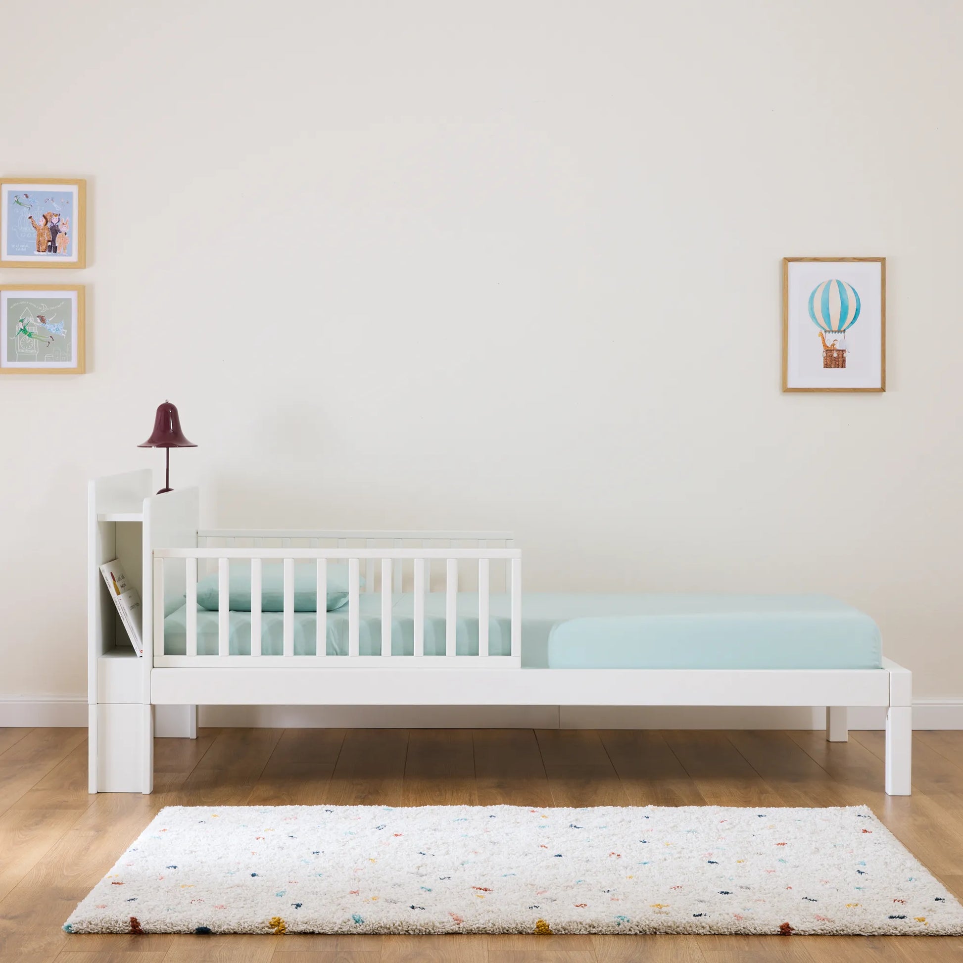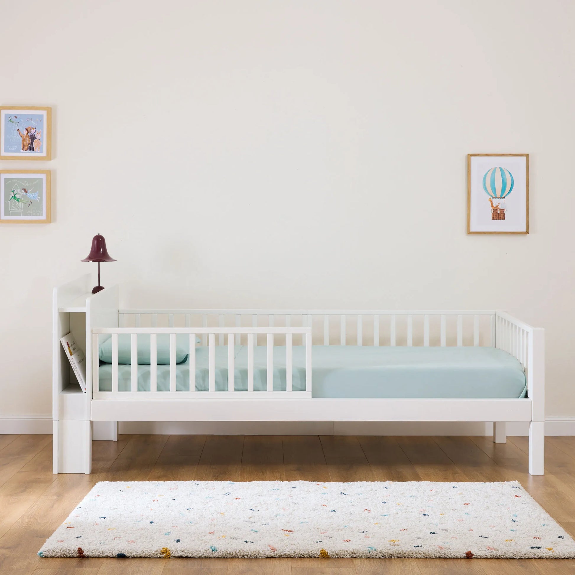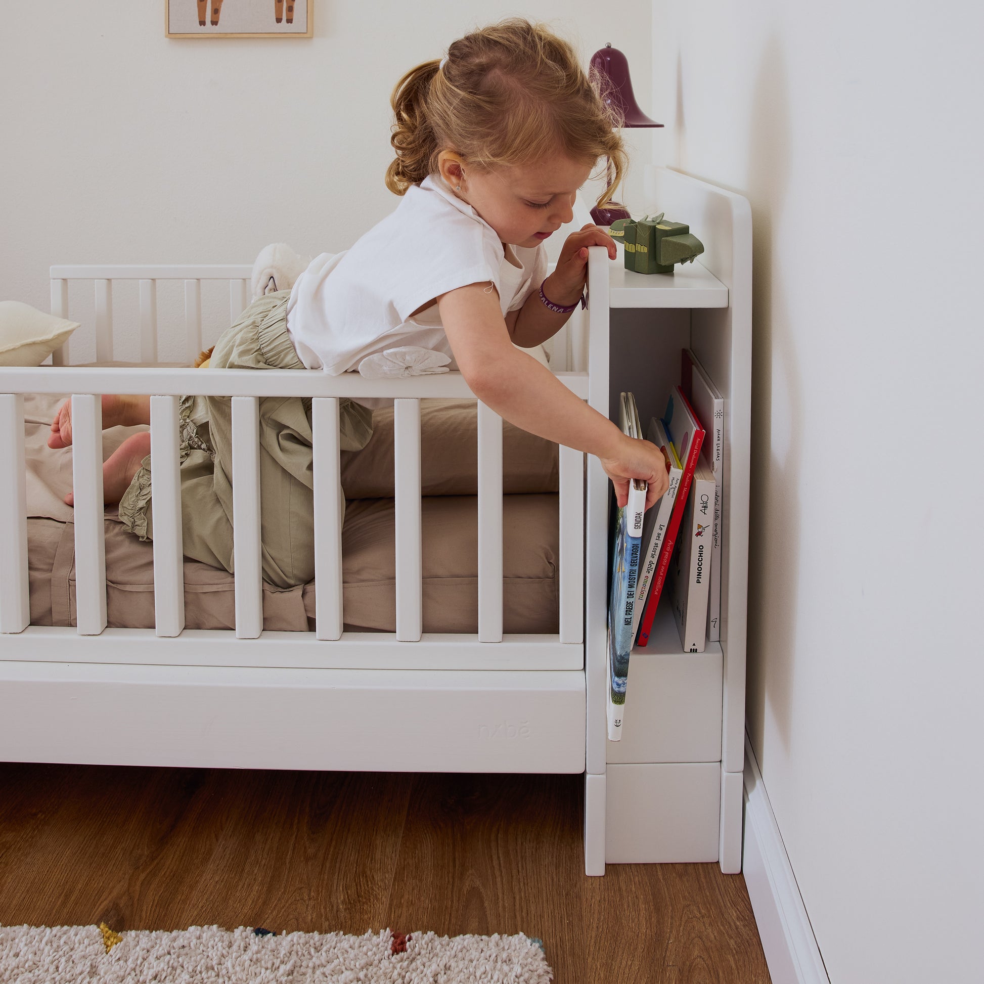 La sua testiera contenitore, innovativa e funzionale, accoglie libri, piccoli oggetti e tutto ciò che rende speciale il rituale della buonanotte. Progettata per essere fissata in modo sicuro e stabile alla struttura del letto, la testiera contenitore è dotata di una mensola, due scomparti laterali aperti e un cassetto centrale con chiusura dall'alto.