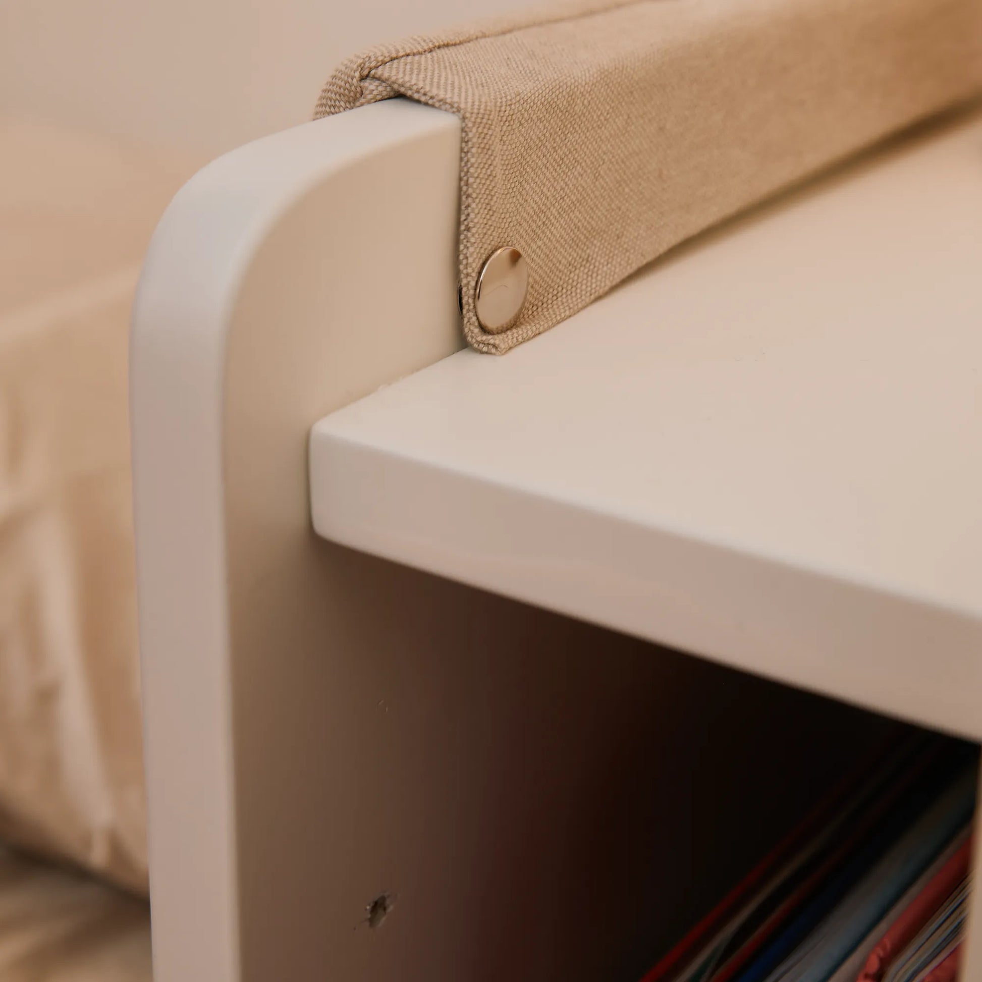 La sua testiera contenitore, innovativa e funzionale, accoglie libri, piccoli oggetti e tutto ciò che rende speciale il rituale della buonanotte. Progettata per essere fissata in modo sicuro e stabile alla struttura del letto, la testiera contenitore è dotata di una mensola, due scomparti laterali aperti e un cassetto centrale con chiusura dall'alto.