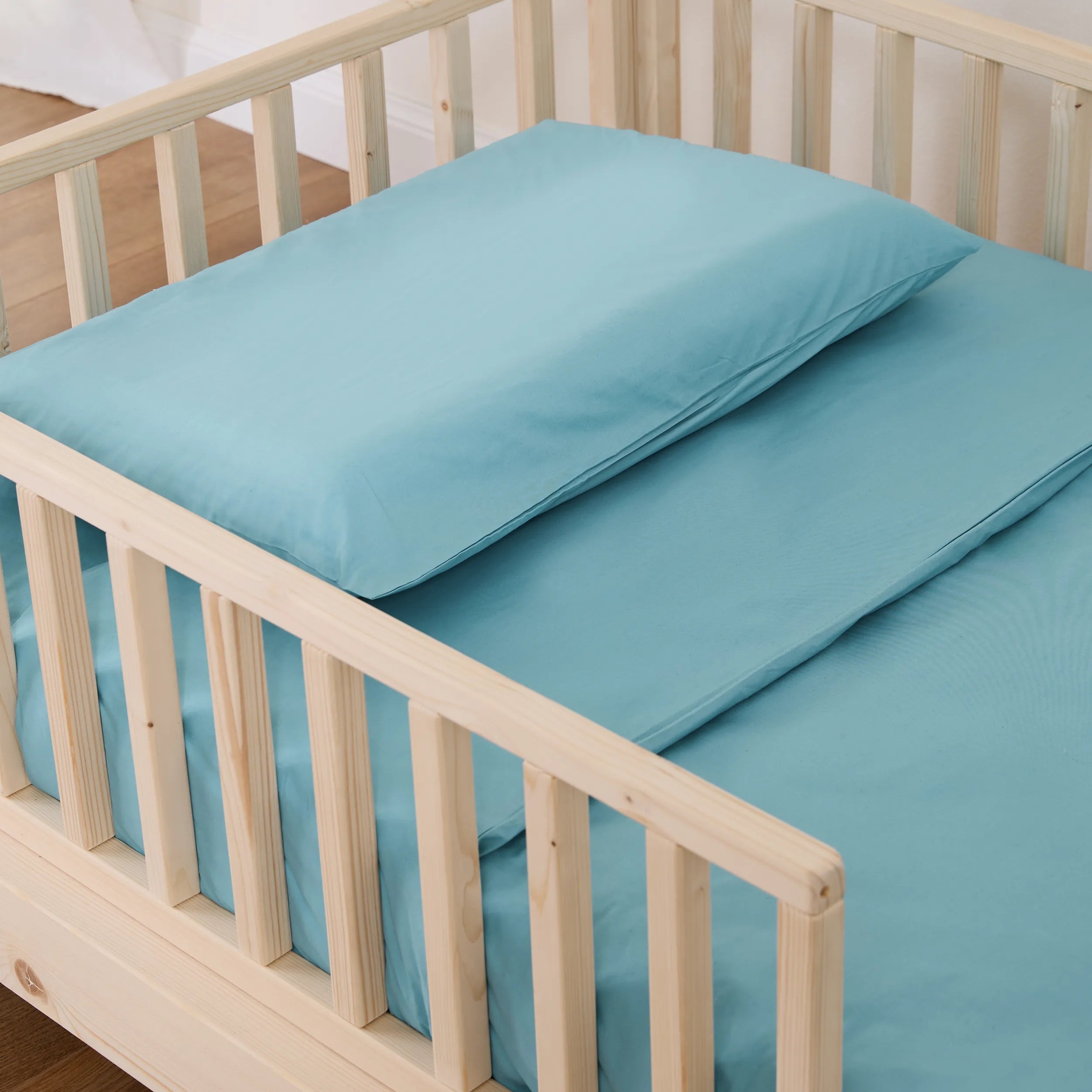 Per un design senza tempo, abbiamo creato un set lenzuola in tinta unita facile da abbinare sia al colore naturale del legno che ad ogni cameretta.
