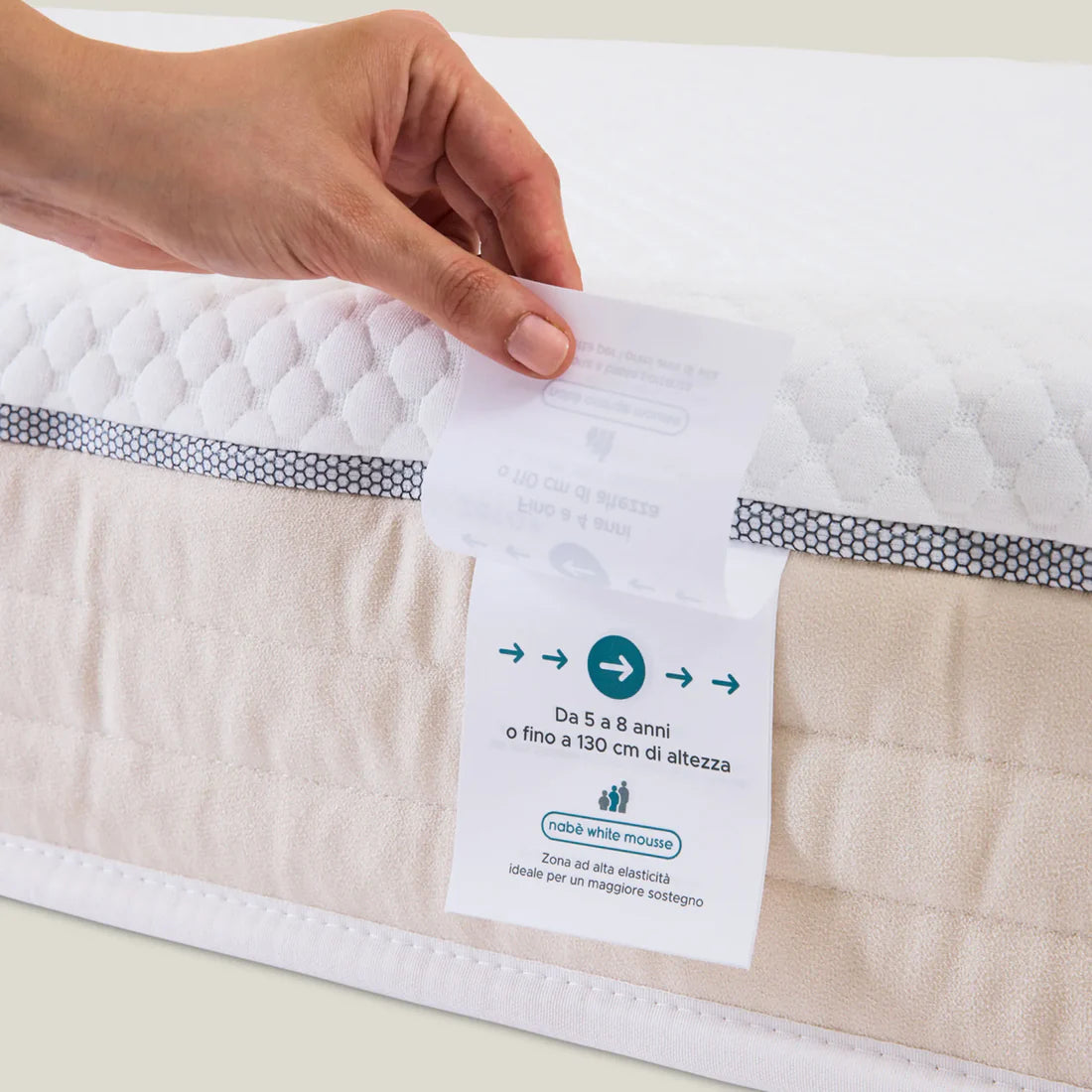 Le tre diverse zone del materasso per bambini nabè, grazie alle specifiche mousse, consentono l'utilizzo durante più fasi della crescita!