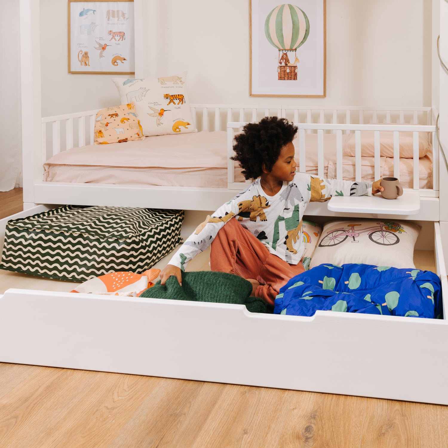 - Comodino integrato alla sponda protettiva (non inclusa), pensato per i bambini più piccoli e disponibile per lato destro e sinistro del letto.