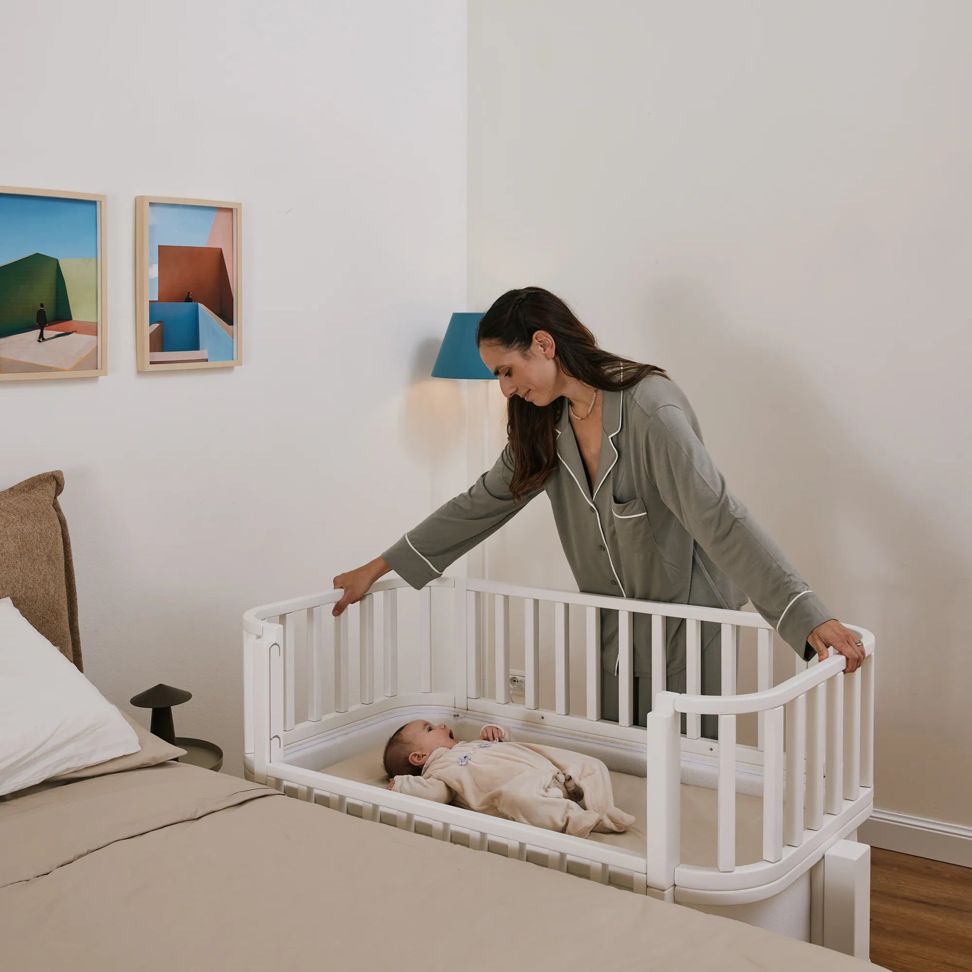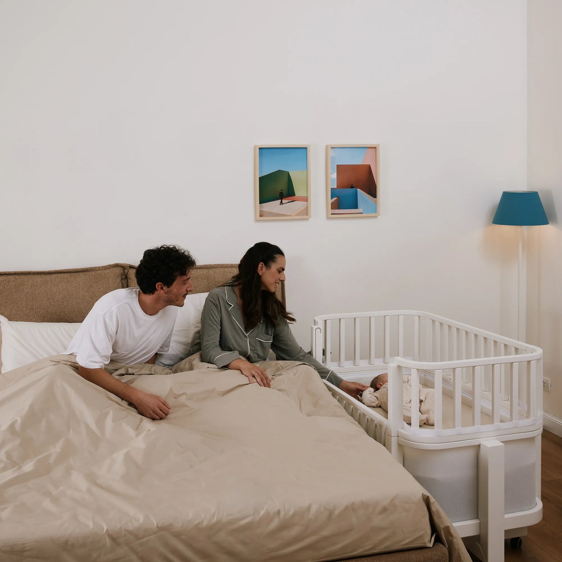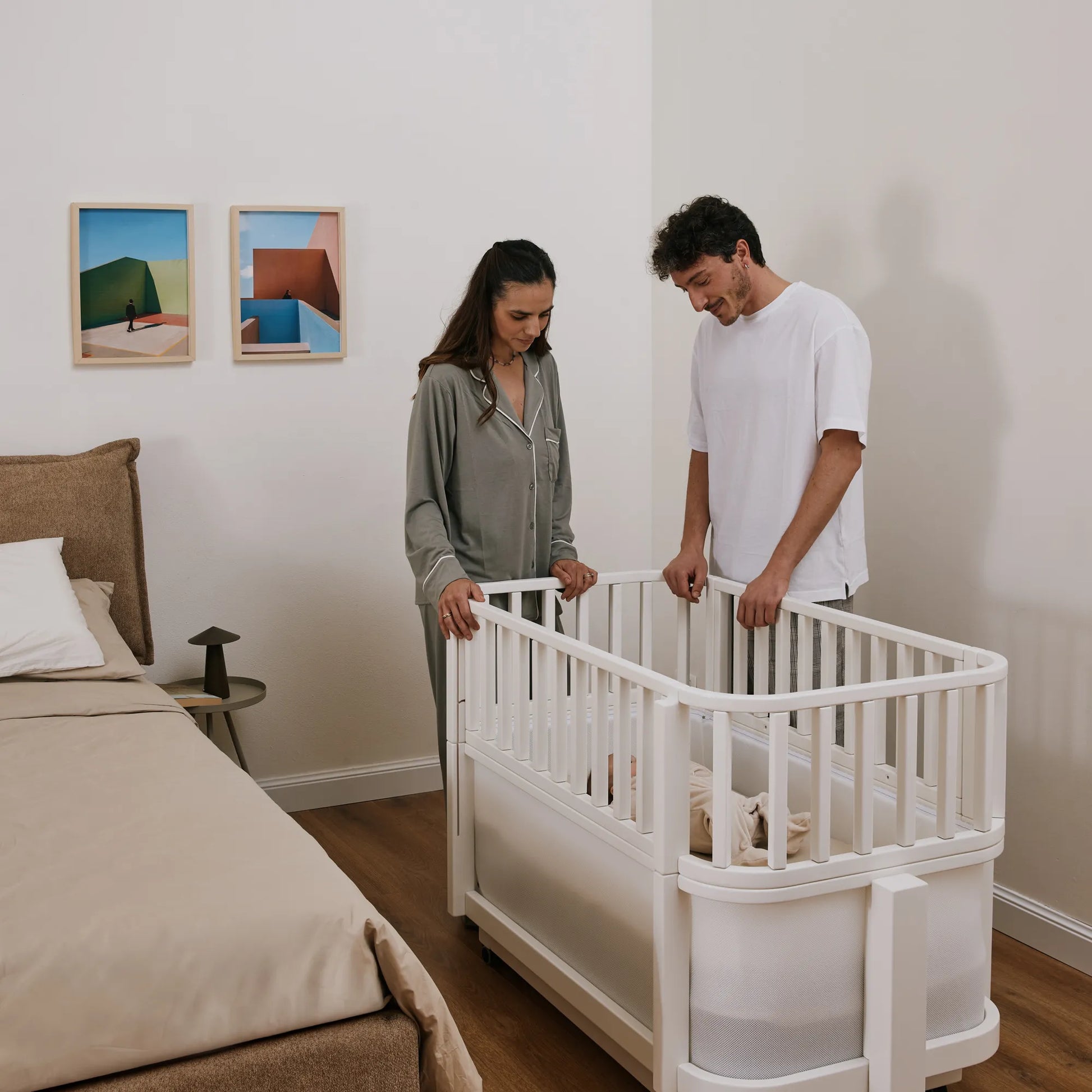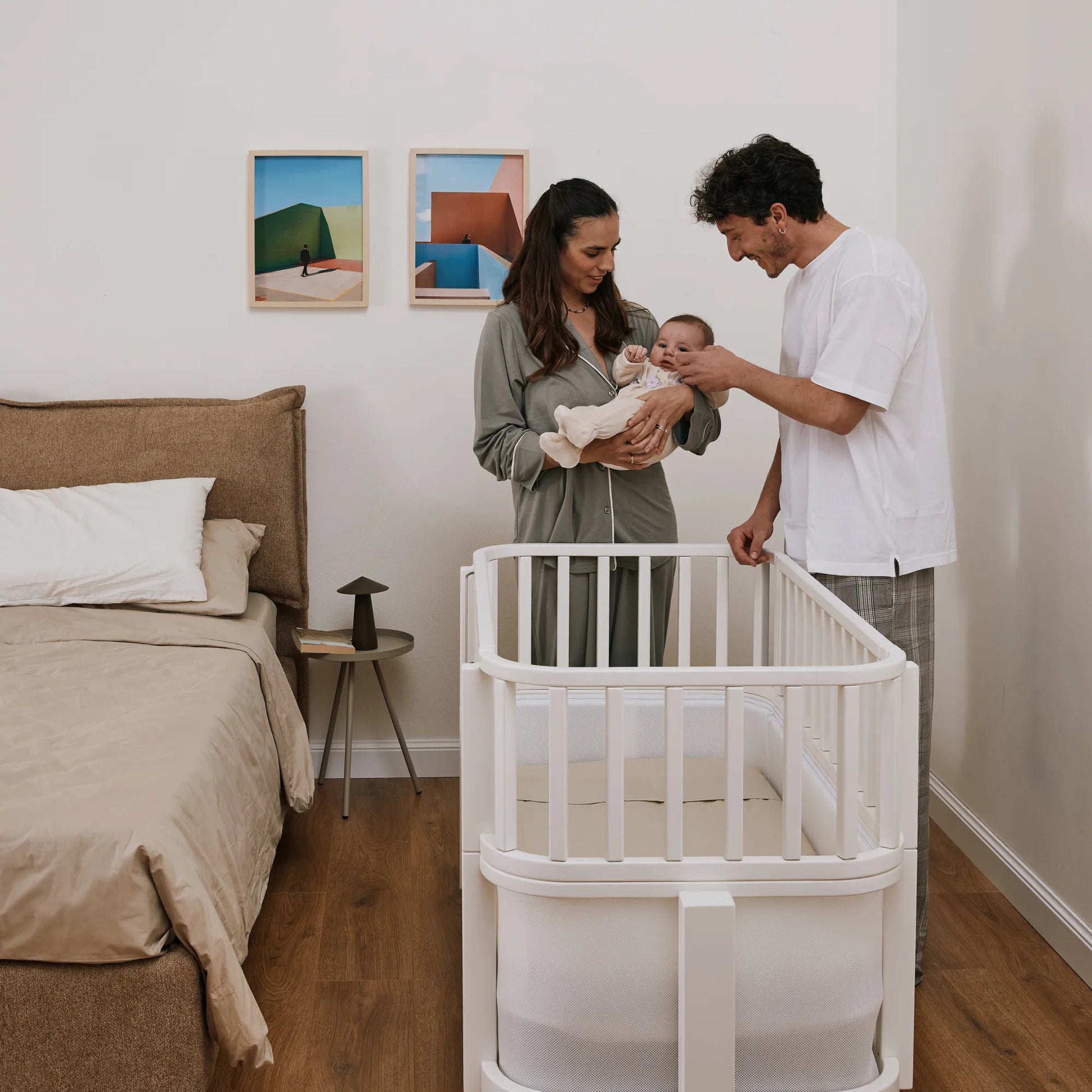 La crescita continua, naturalmente. Con il kit evolutivo, la culla evolutiva si trasforma da next to me a letto evolutivo zero+.