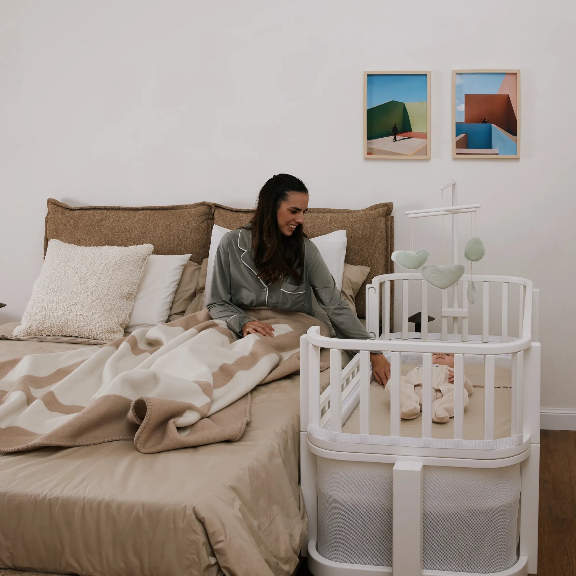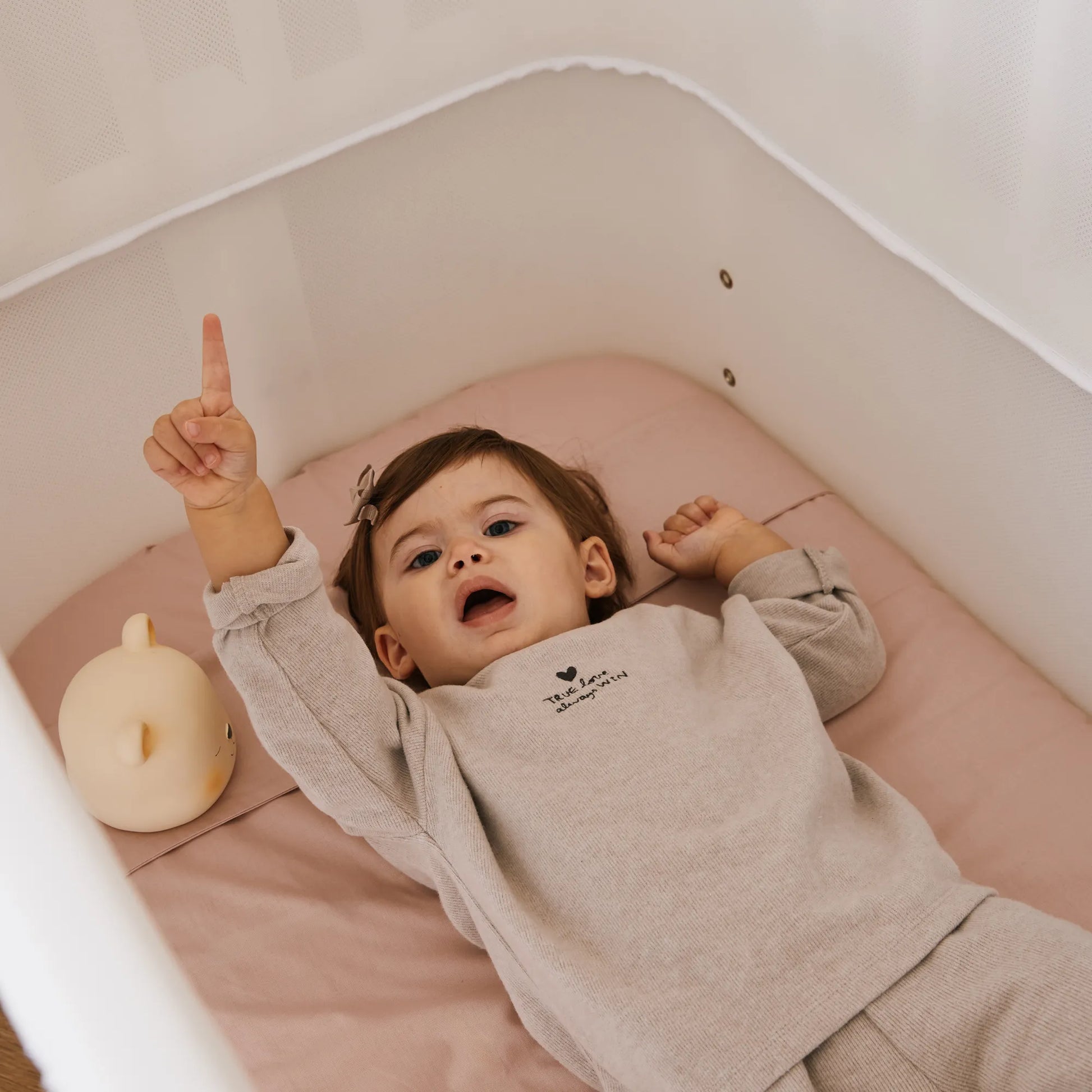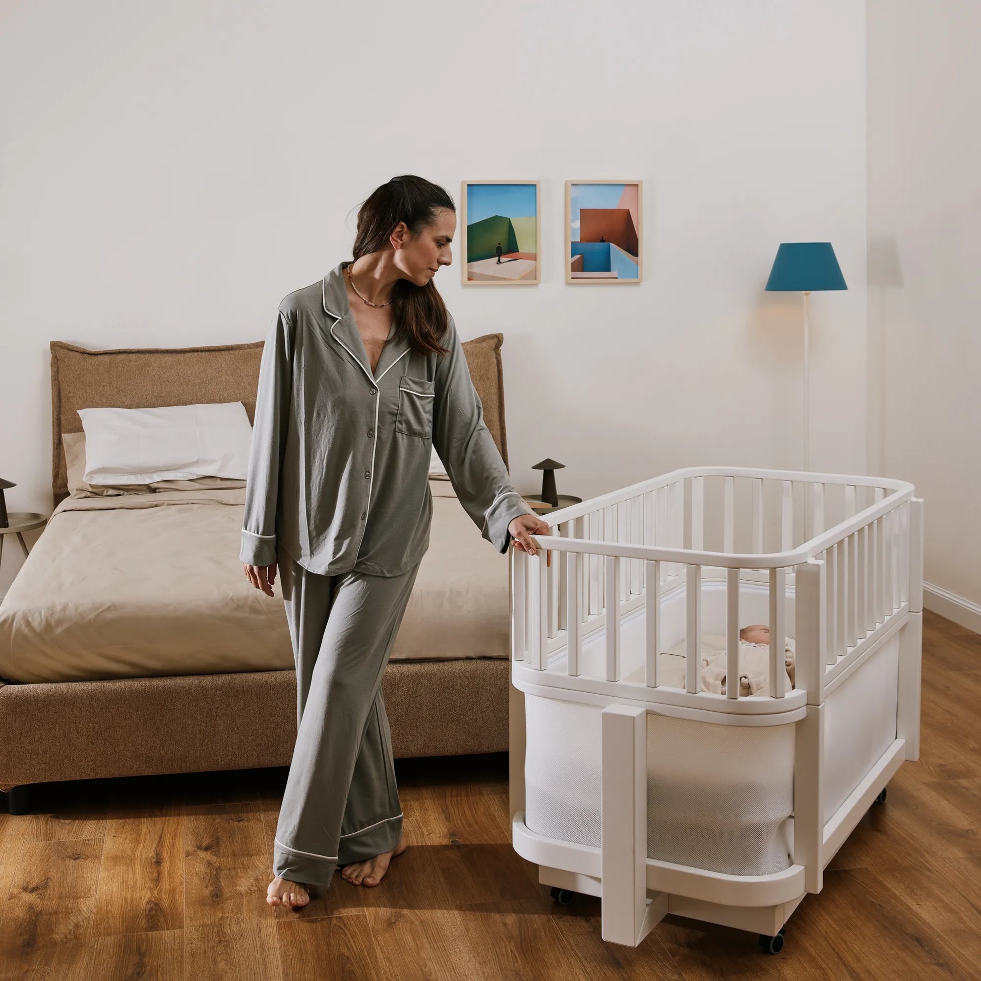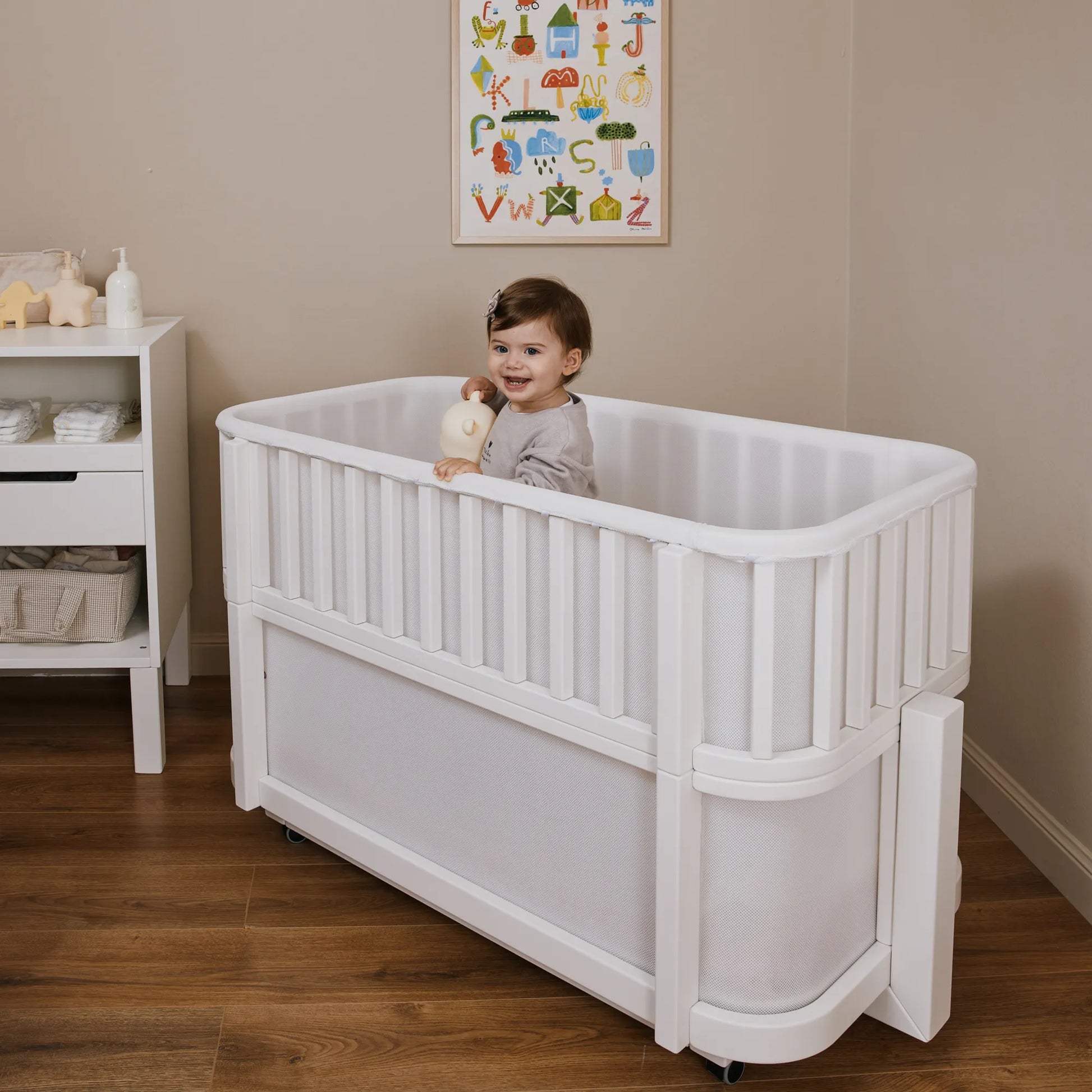 La crescita continua, naturalmente. Con il kit evolutivo, la culla evolutiva si trasforma da next to me a letto evolutivo zero+.