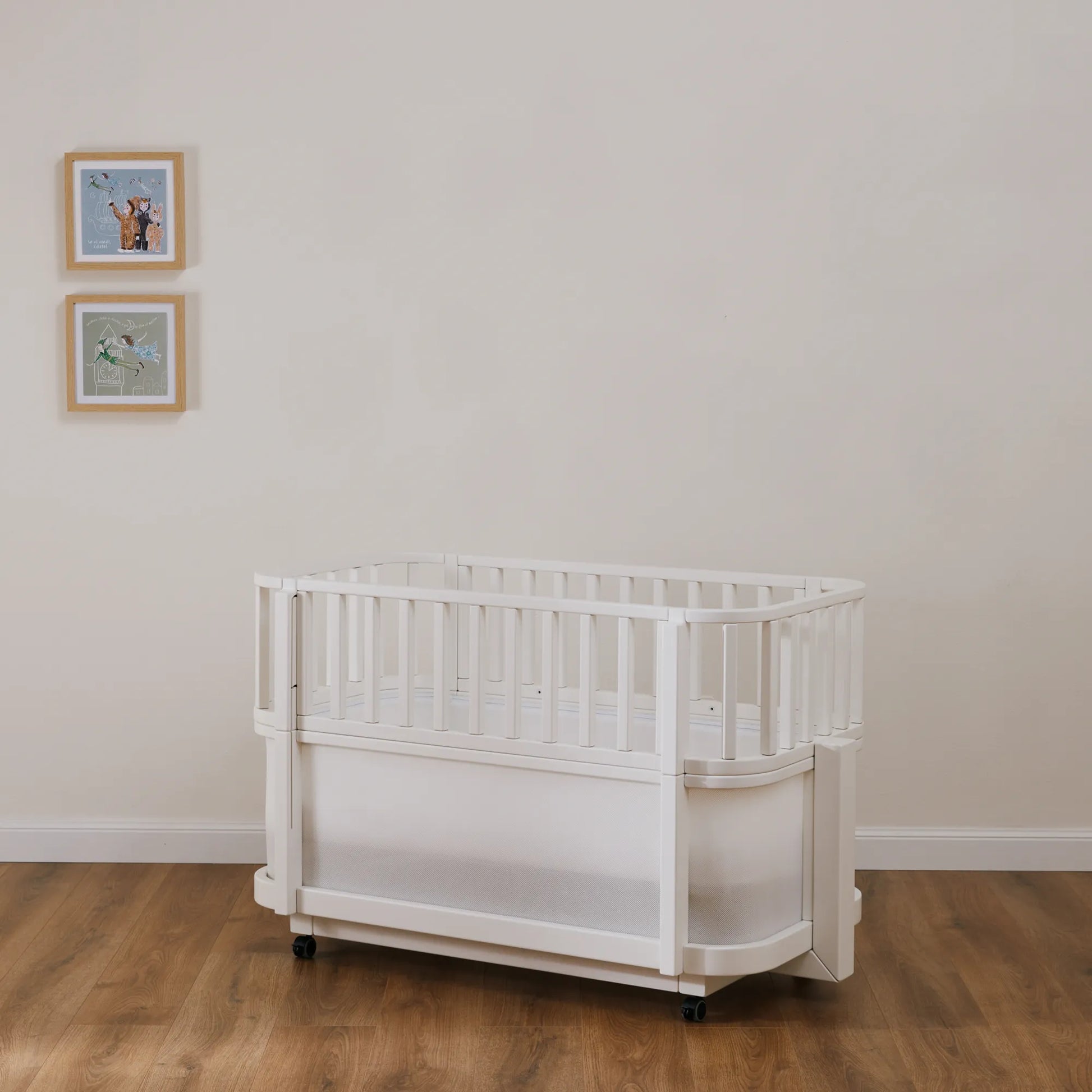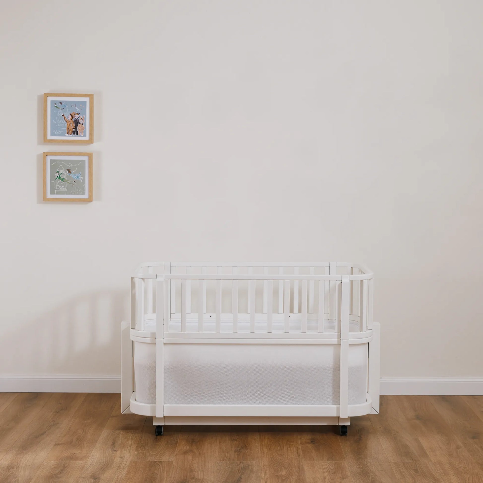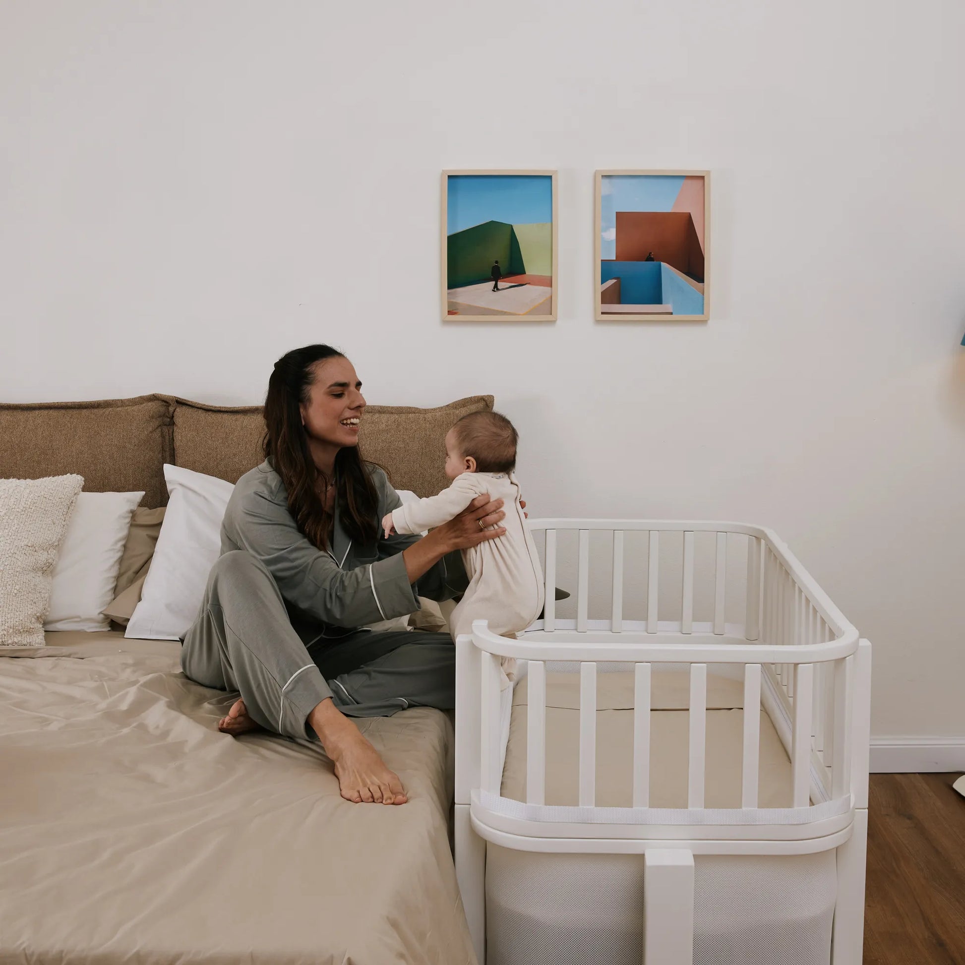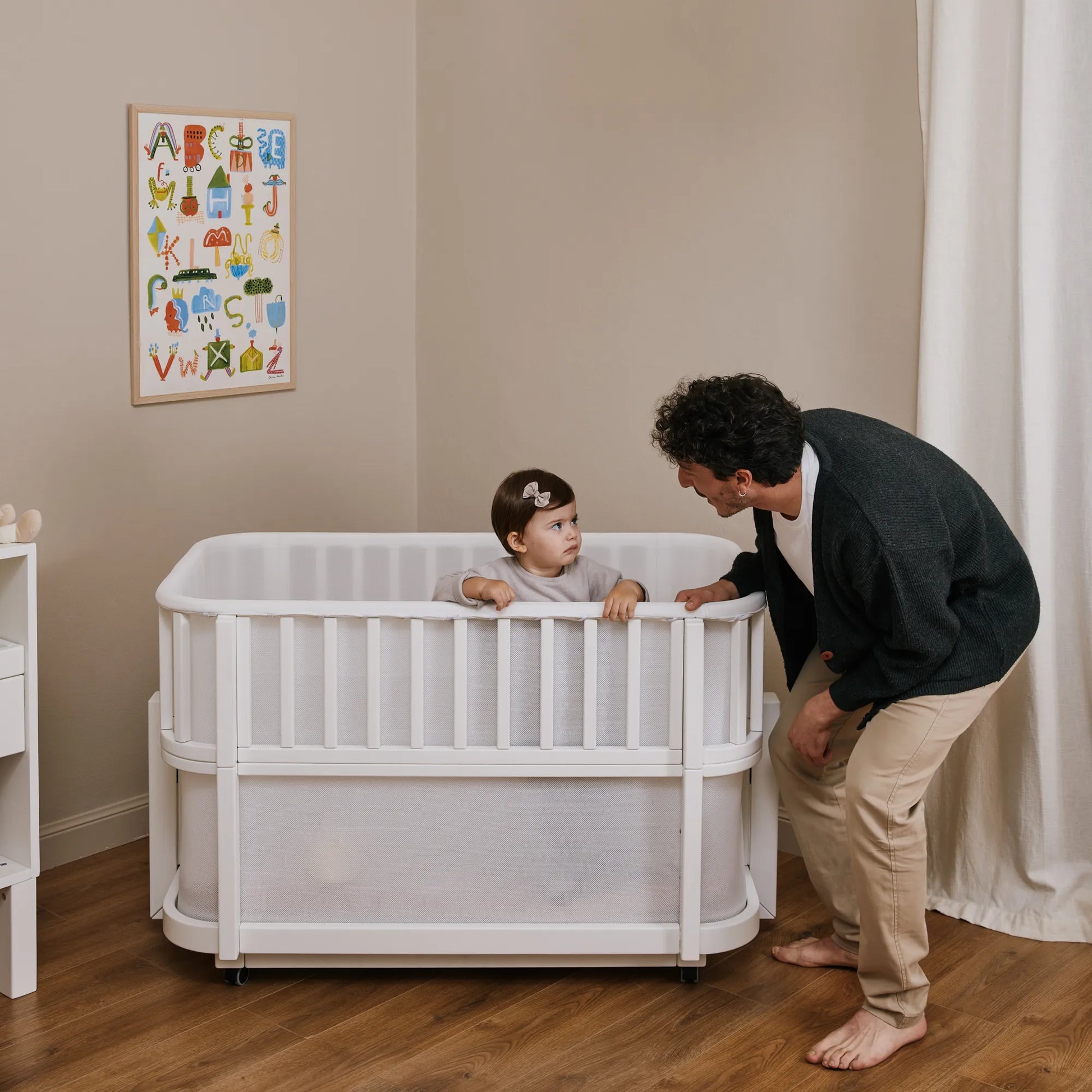 Un prodotto innovativo! Da next to me, con sponda abbassata e altezza regolabile, si trasforma in culla, per poi diventare un vero e proprio letto! Grazie al piano materasso posizionabile su 3 livelli, zero+ Una si riadatta per ospitare bambini di diverse età. Il tessuto in mesh 3D traspirante che avvolge la culla, offre maggiore protezione e comfort. Con il kit evolutivo, zero+ Una bio paint si trasforma ancora e diventa il loro primo letto montessori evolutivo.