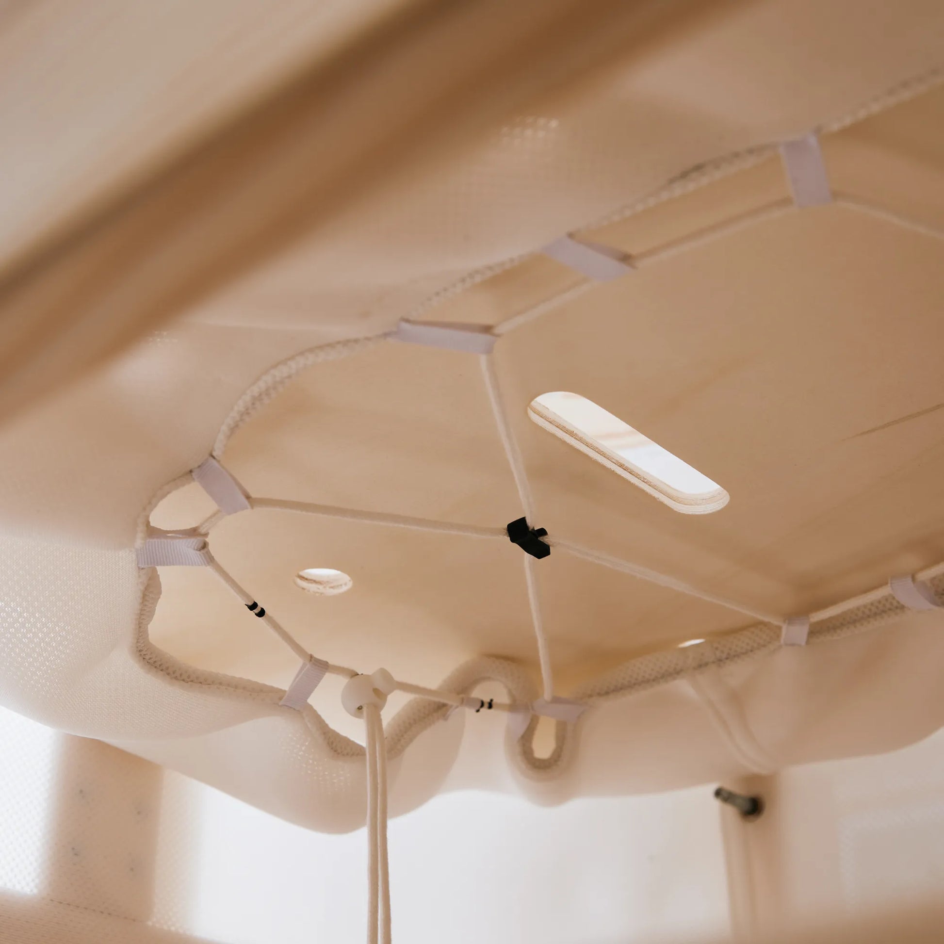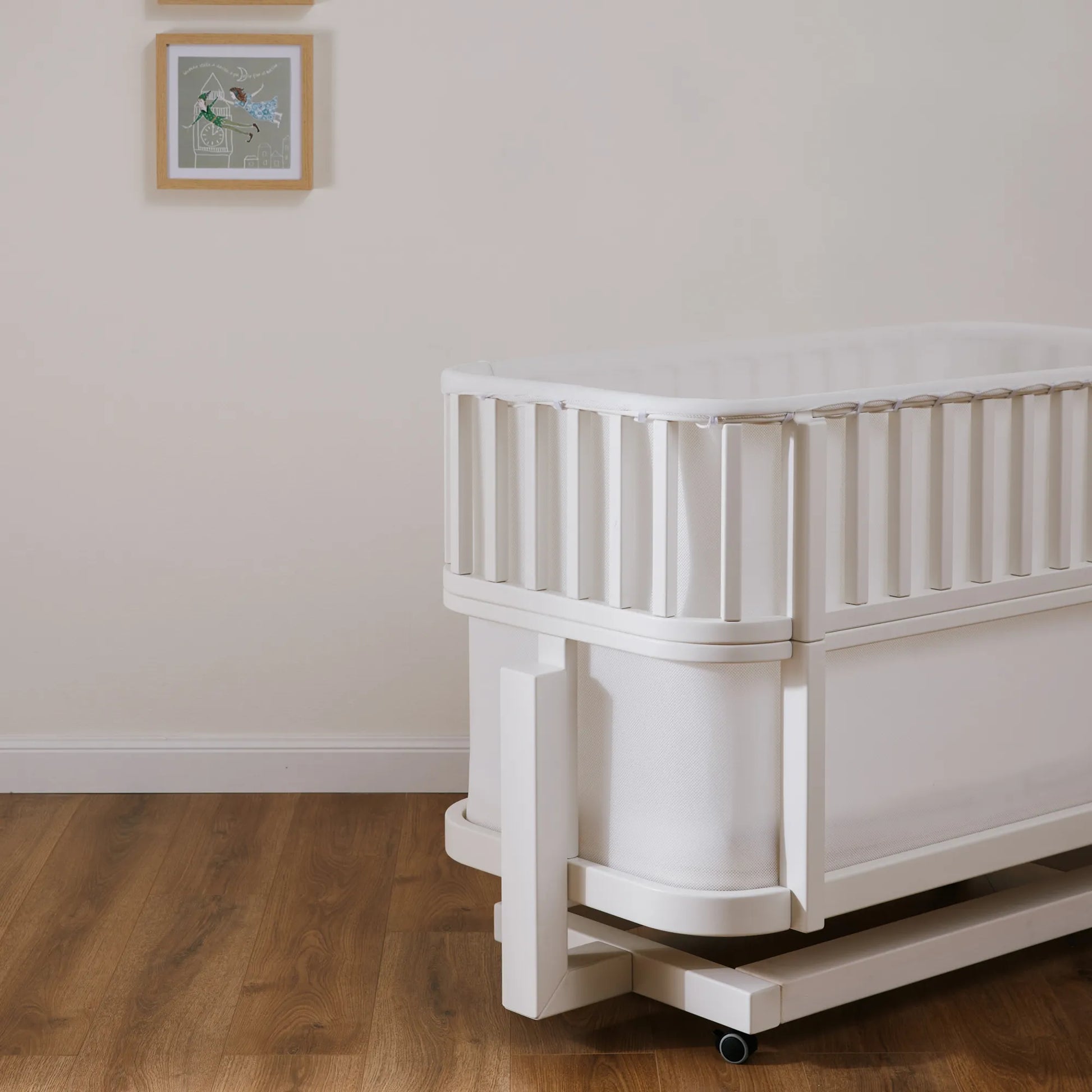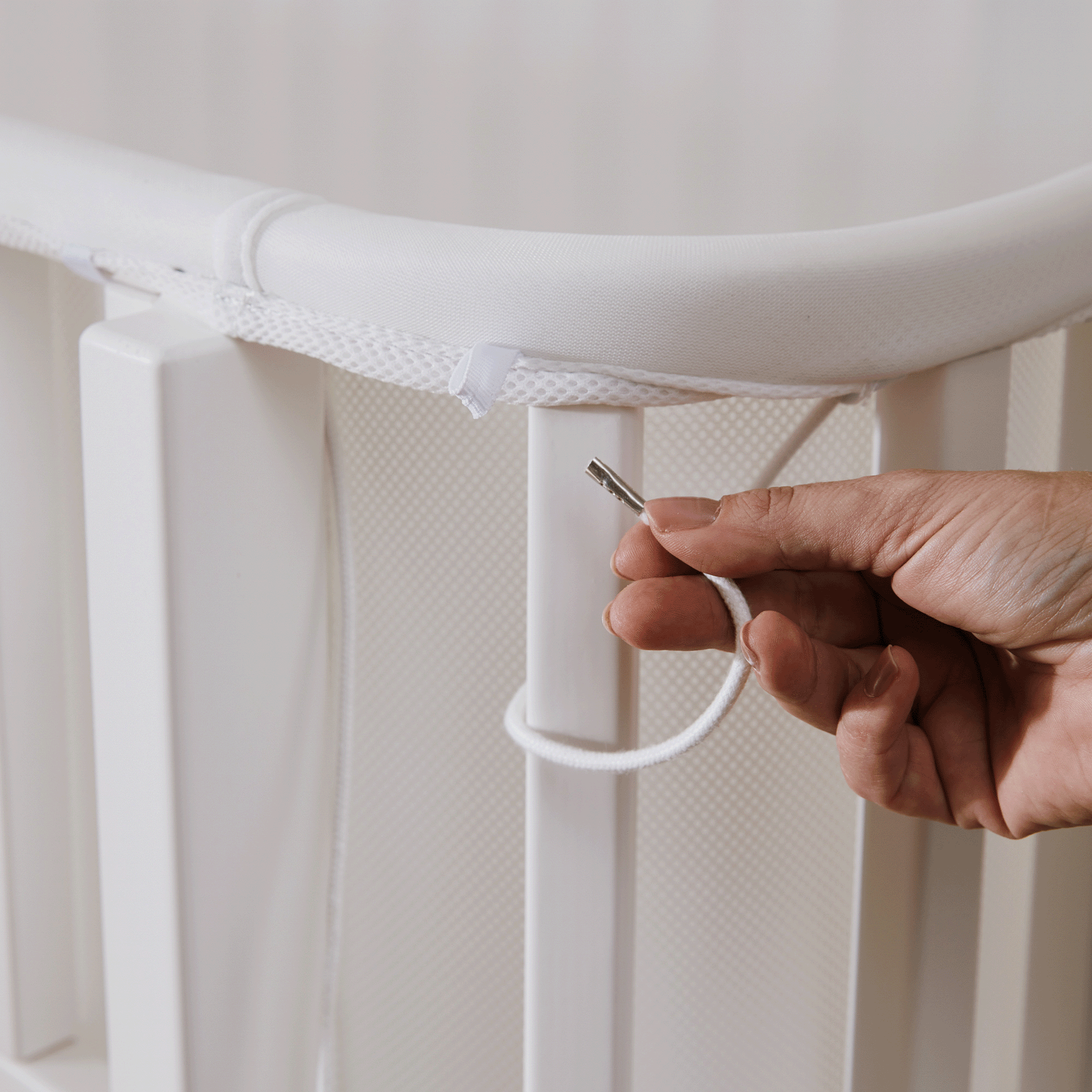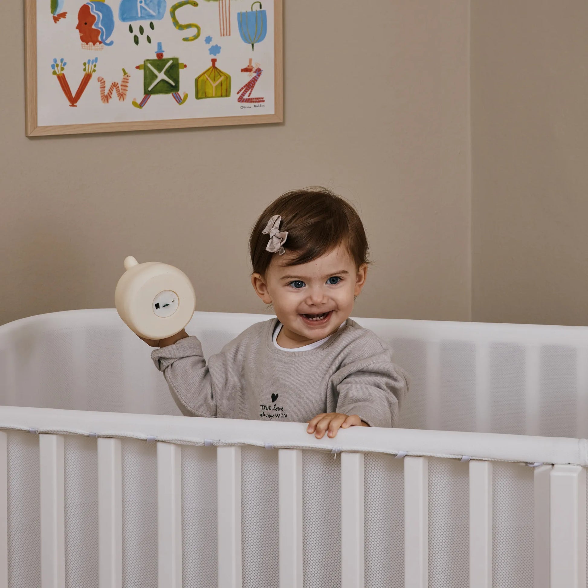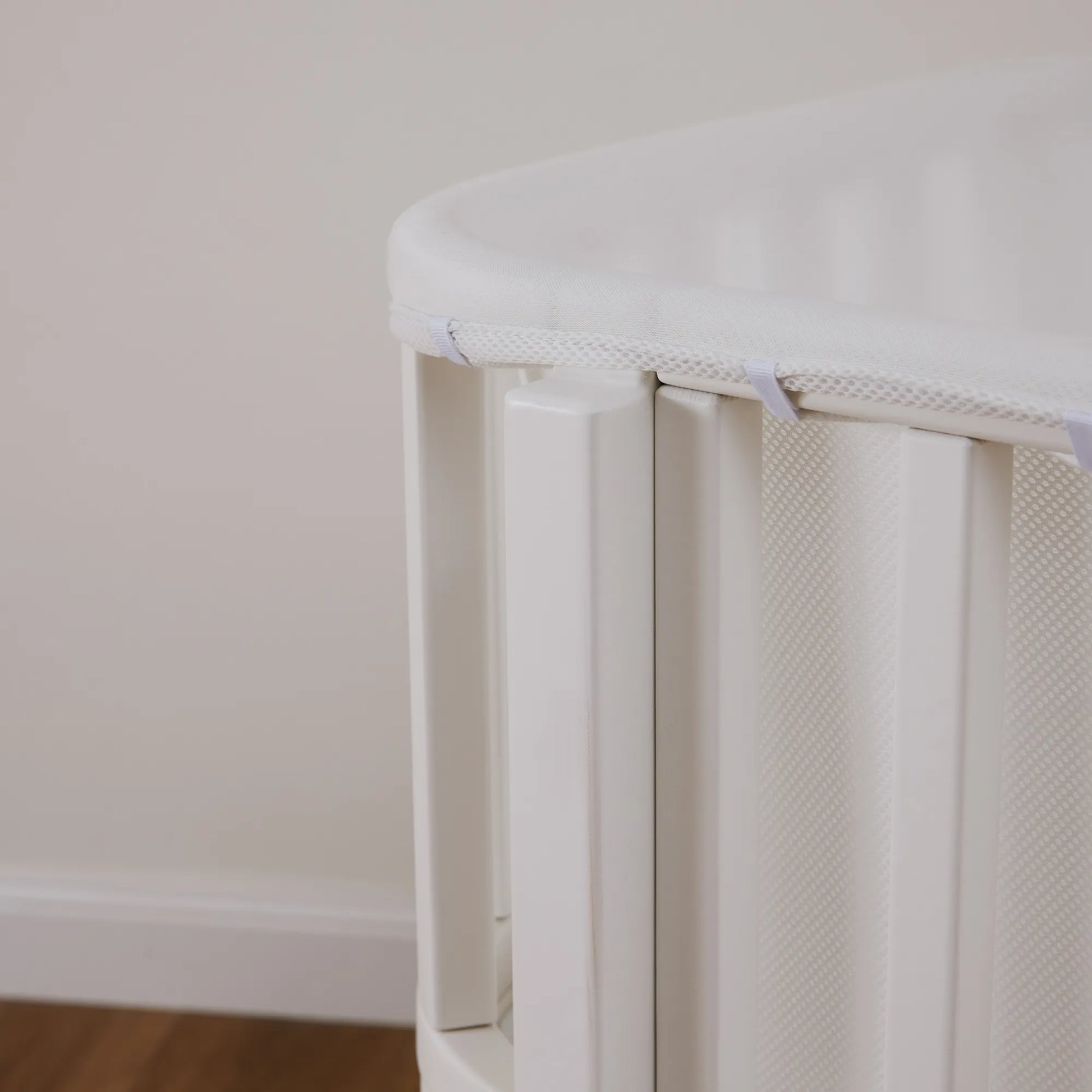 Il rivestimento in mesh 3D 100% poliestere assicura elasticità, alta traspirabilità e una ventilazione continua grazie alla struttura alveolare multistrato, che aiuta a disperdere l’umidità e mantiene la culla fresca e igienica. È completamente removibile grazie a pratiche zip e lavabile in lavatrice a 30°C. Asciugare all’aria per preservarne qualità ed elasticità.