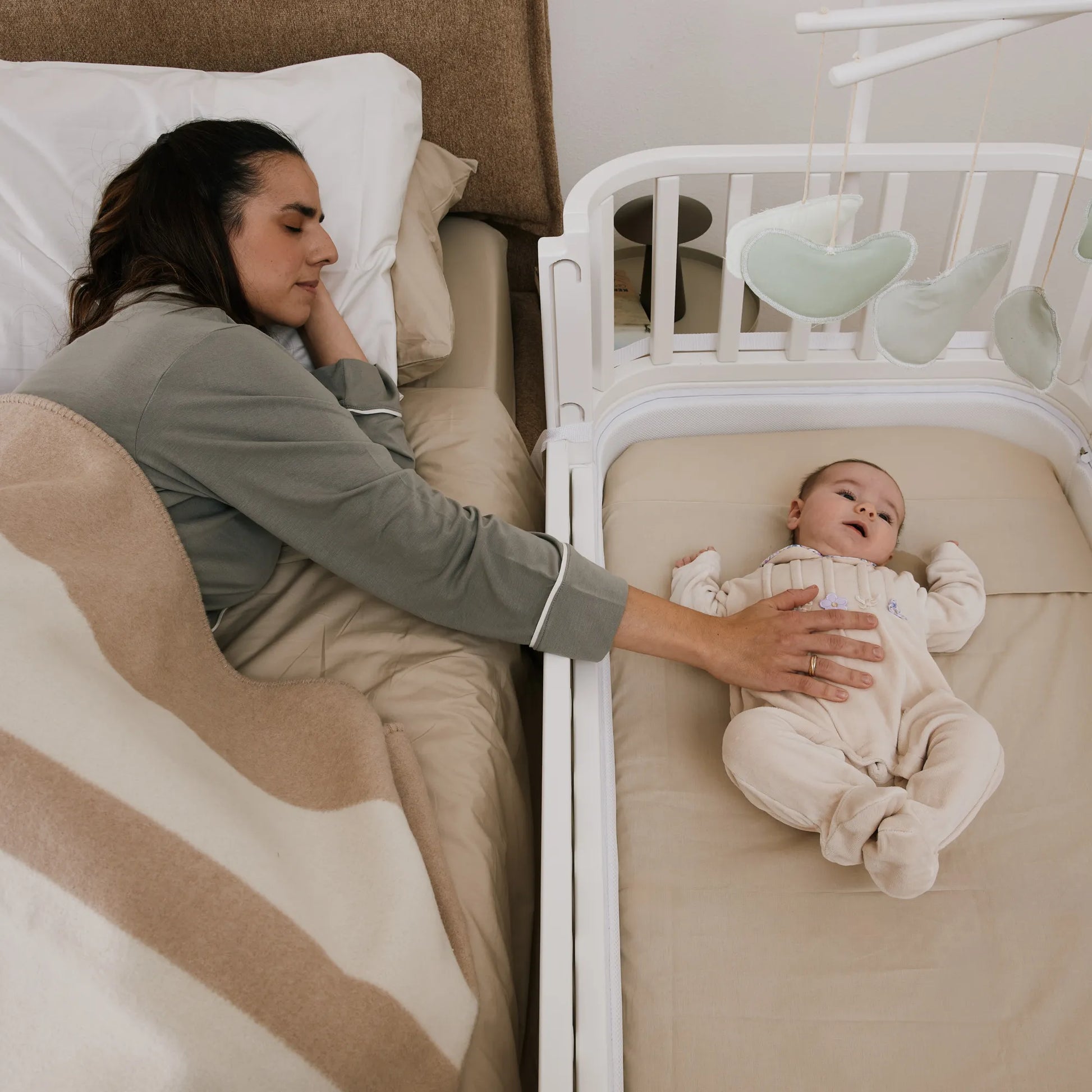 Utilizza zero+ Una sin dalle prime notti. In modalità culla next to me, con la sponda abbassata e l’altezza regolabile, dormirete vicini in totale sicurezza.