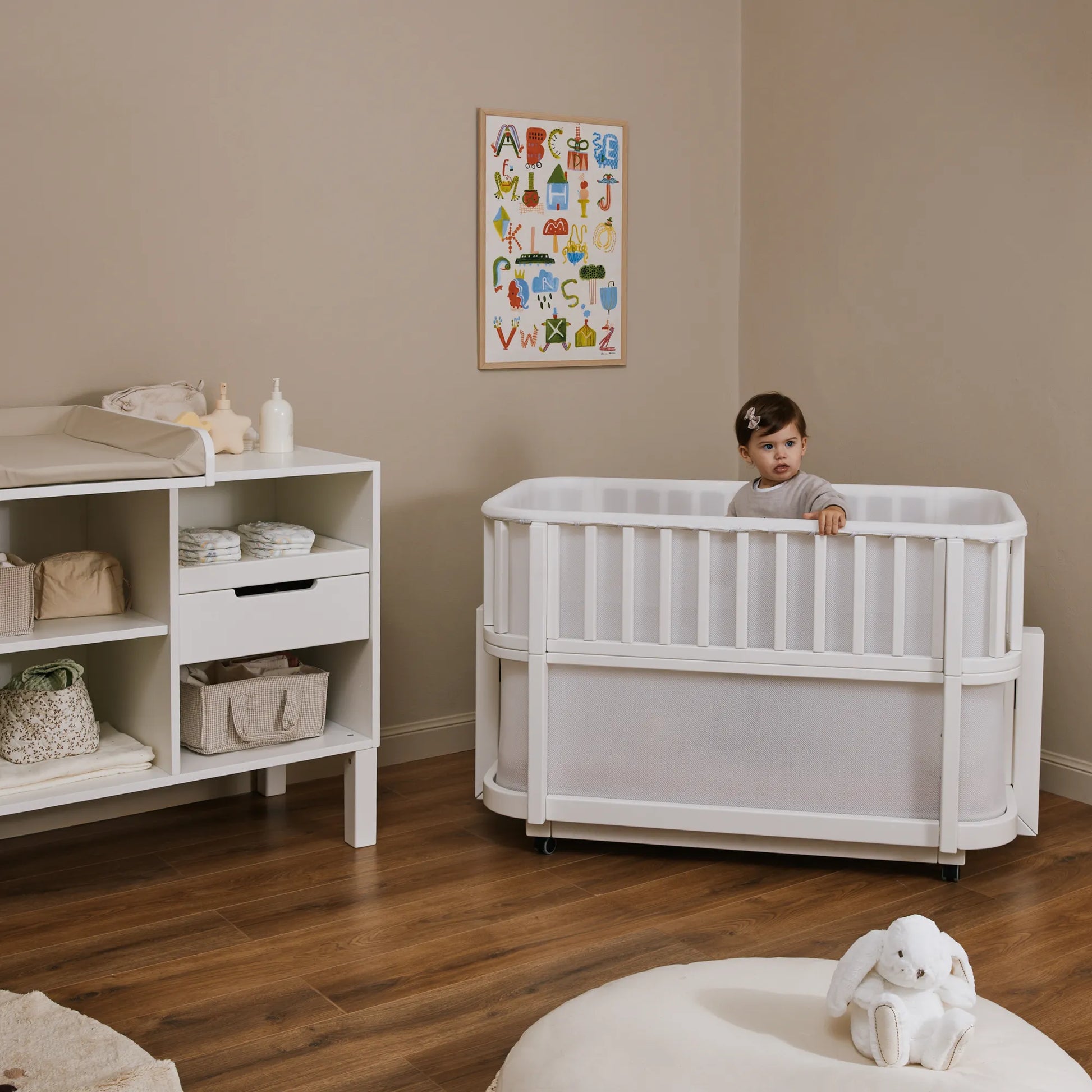 Una cameretta pensata per accompagnare ogni fase, fin dai primi giorni di vita. La culla next to me evolutiva zero+ Una è solo l’inizio di un ambiente che si trasforma insieme al tuo bambino — sicuro, naturale e costruito secondo i principi Montessori. Scopri il fasciatoio evolutivo EverGrow, per creare uno spazio armonioso e funzionale per una cameretta che cresce insieme a voi.