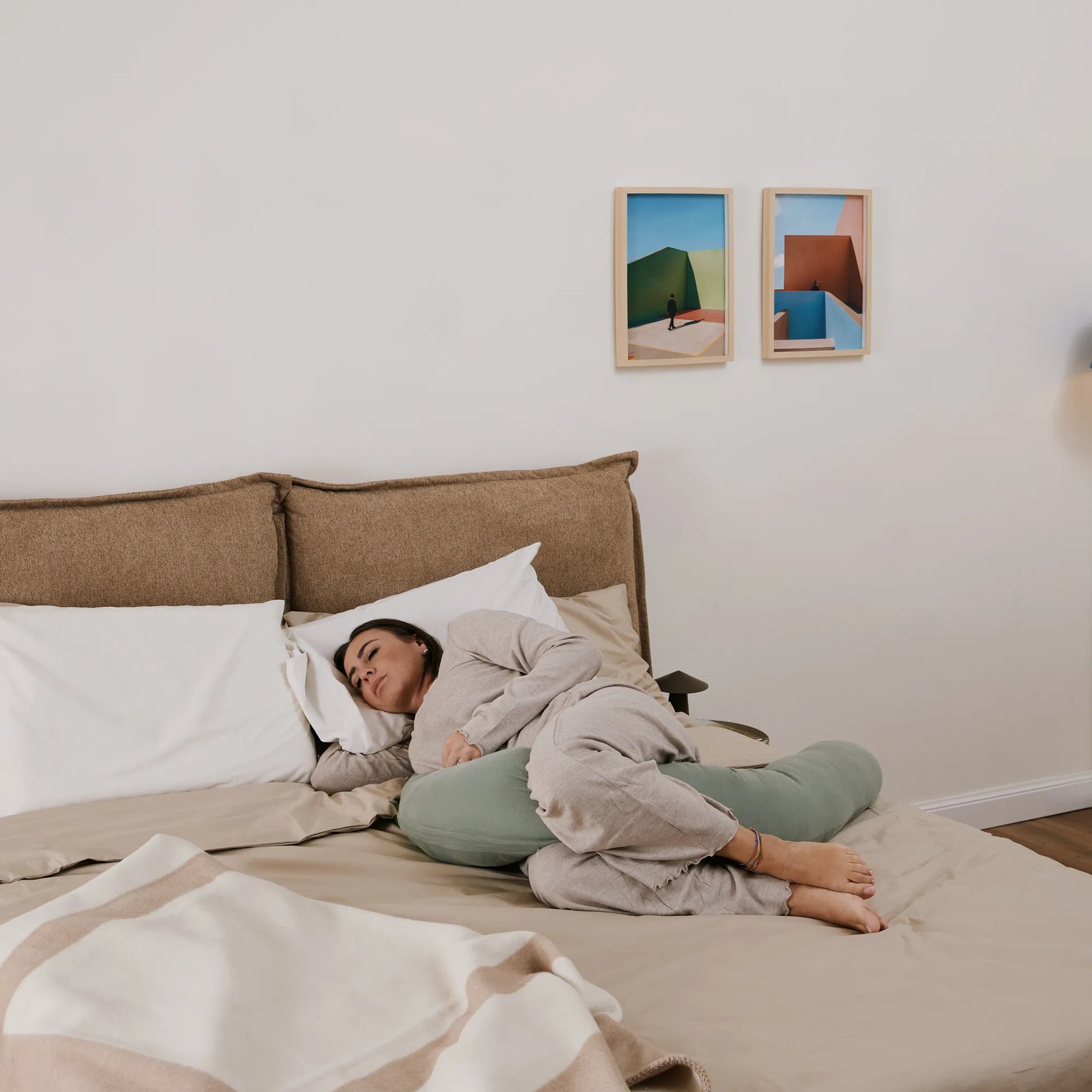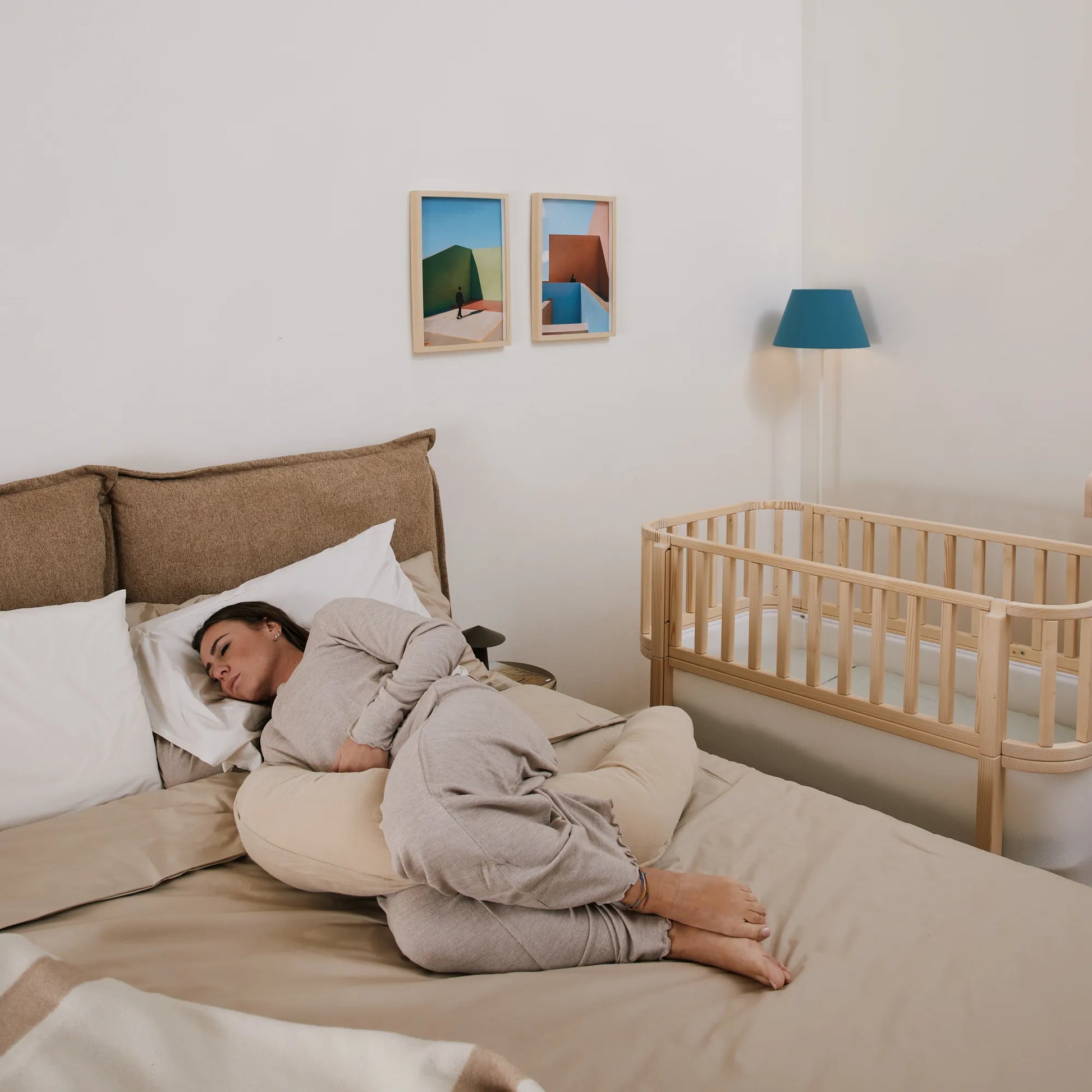 Il cuscino allattamento Luna è anche un perfetto cuscino gravidanza che avvolge con comfort e sostegno in ogni fase, già a partire dalla 15ª settimana di gravidanza. Grazie alla sua forma flessibile, è ideale per dormire lateralmente e offre un appoggio morbido e stabile al pancione, così il riposo diventa più sereno e rigenerante.