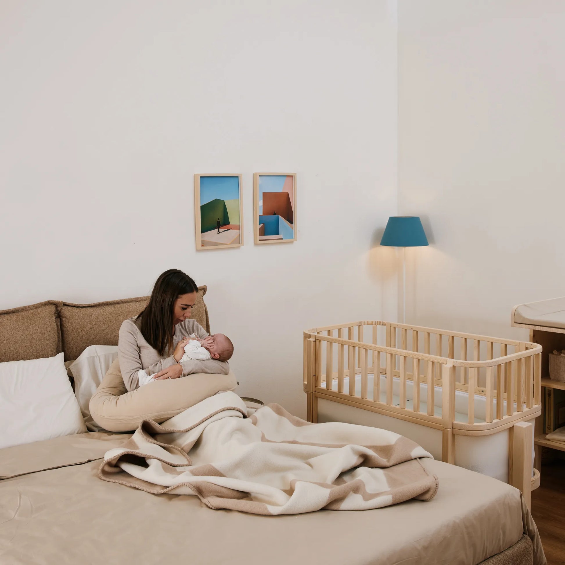 E il viaggio insieme continua anche oltre l’allattamento. Il cuscino allattamento Luna è un cuscino evolutivo che cresce con la tua famiglia: perfetto come nido morbido durante i primi giochi, ideale per i momenti di relax, utile come supporto nelle prime fasi di scoperta del mondo. È un tassello prezioso della linea Newborn di Nabè, pensata per creare una cameretta che accompagna la crescita con naturalezza, bellezza e funzionalità.