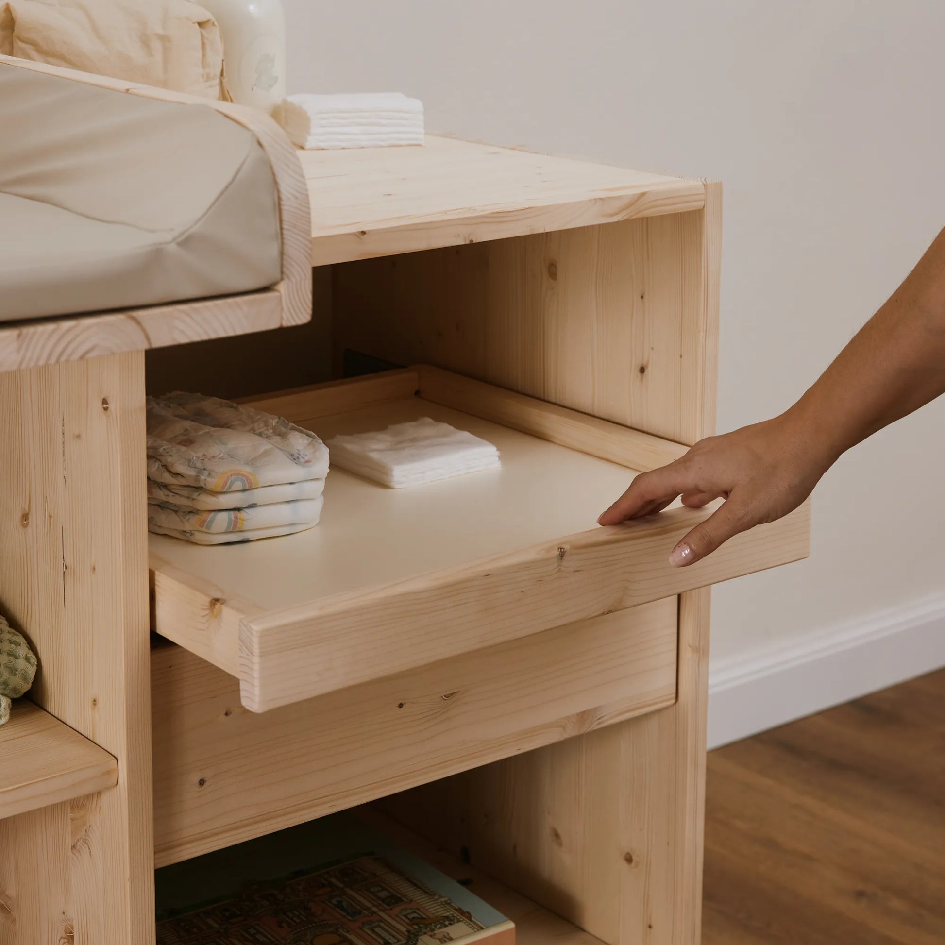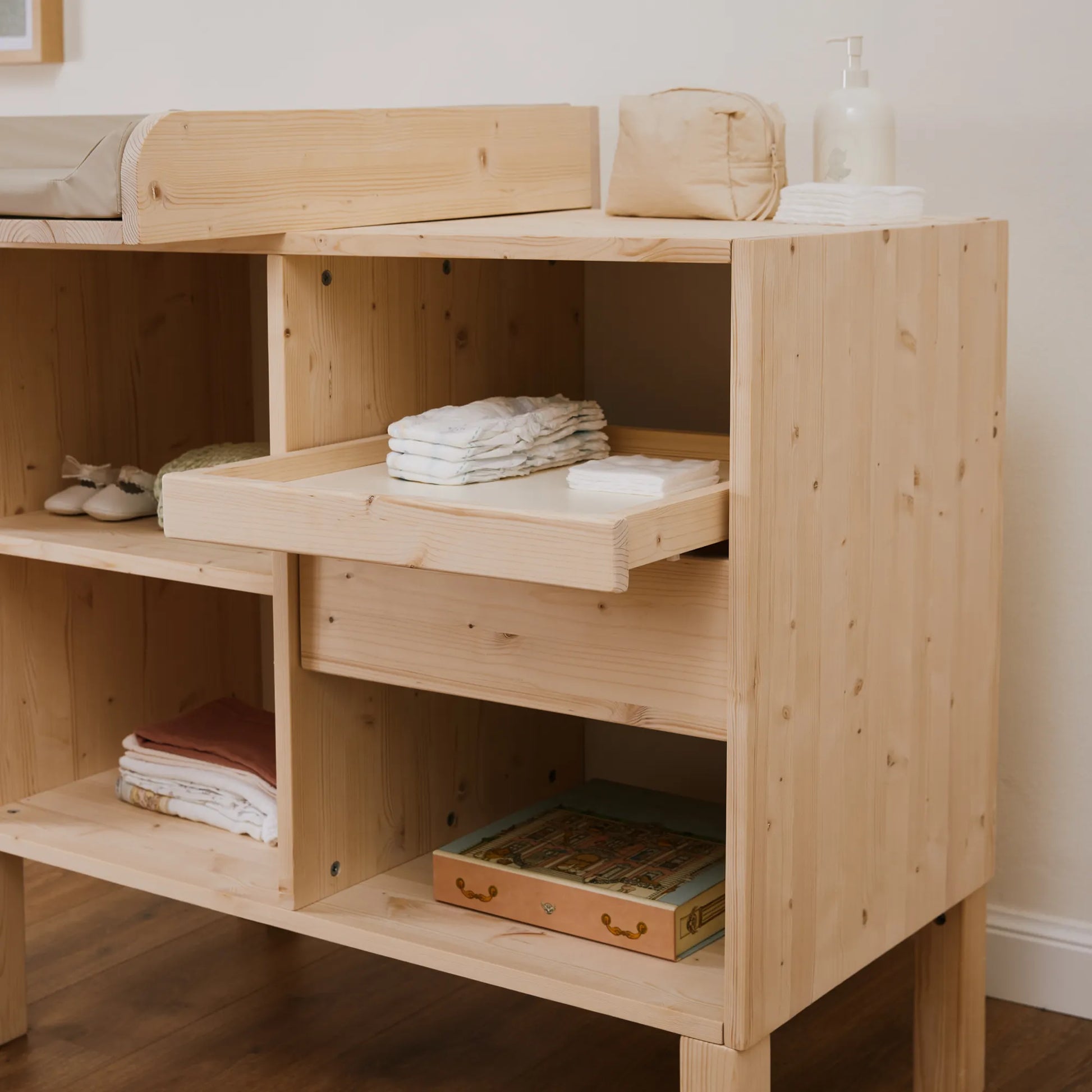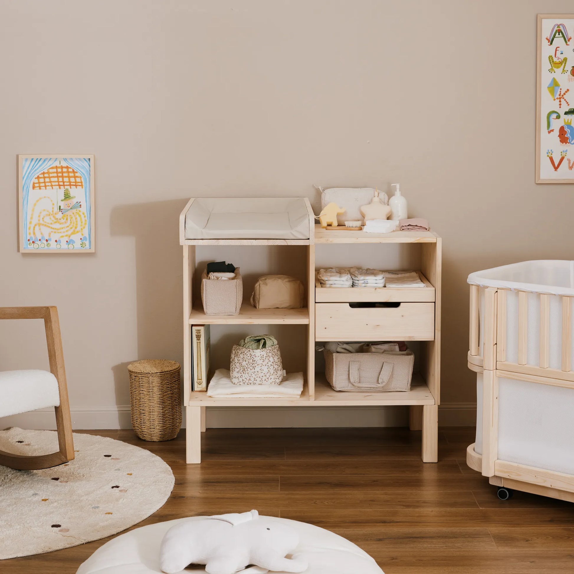 Utilizza il fasciatoio EverGrow sin dai primi cambi pannolino. Spazioso e sicuro, è il perfetto arredo per riporre tutto il necessario.