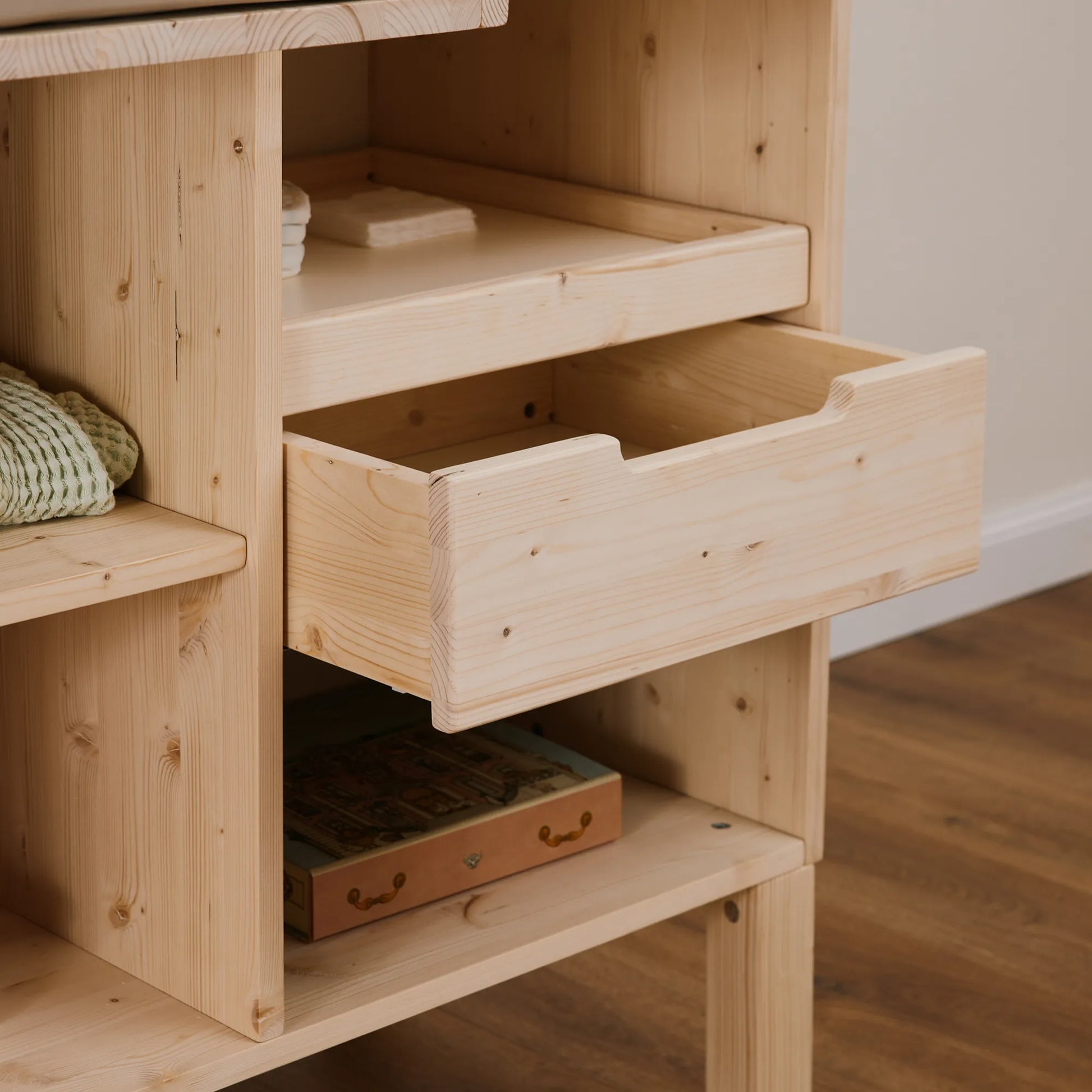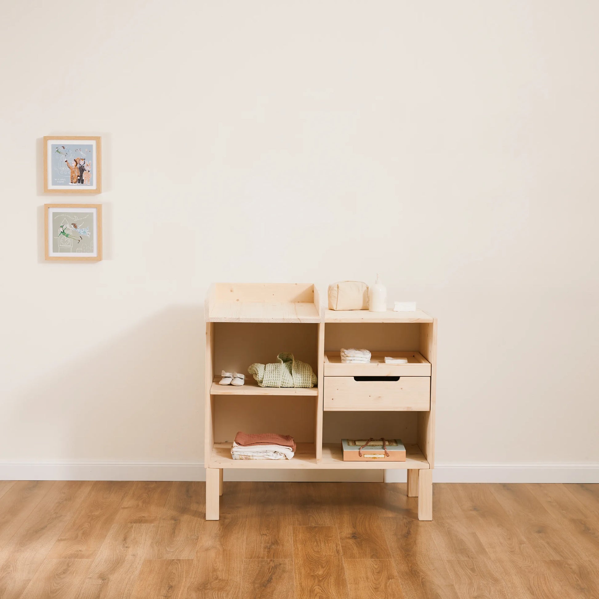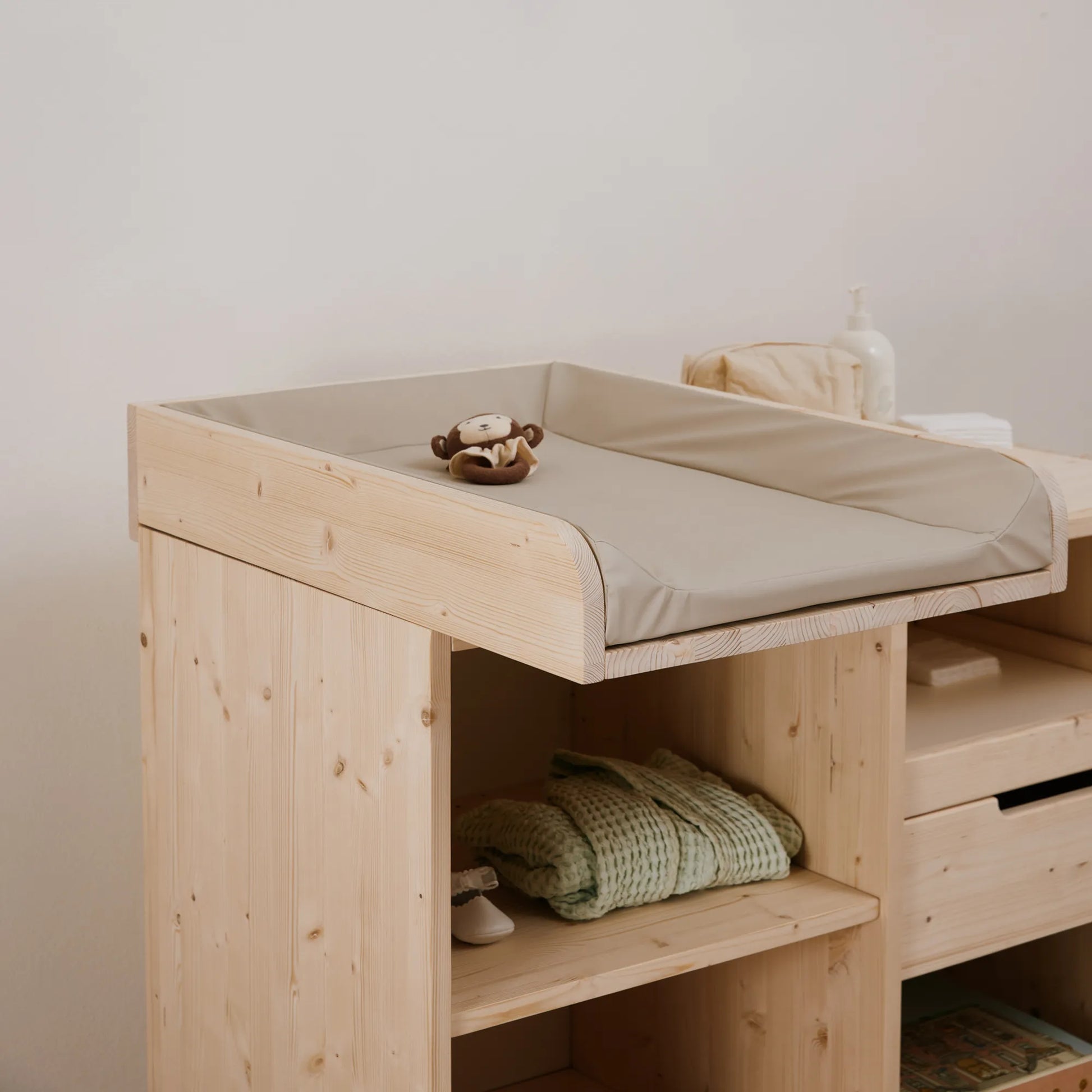 Utilizza il fasciatoio EverGrow sin dai primi cambi pannolino. Spazioso e sicuro, è il perfetto arredo per riporre tutto il necessario.