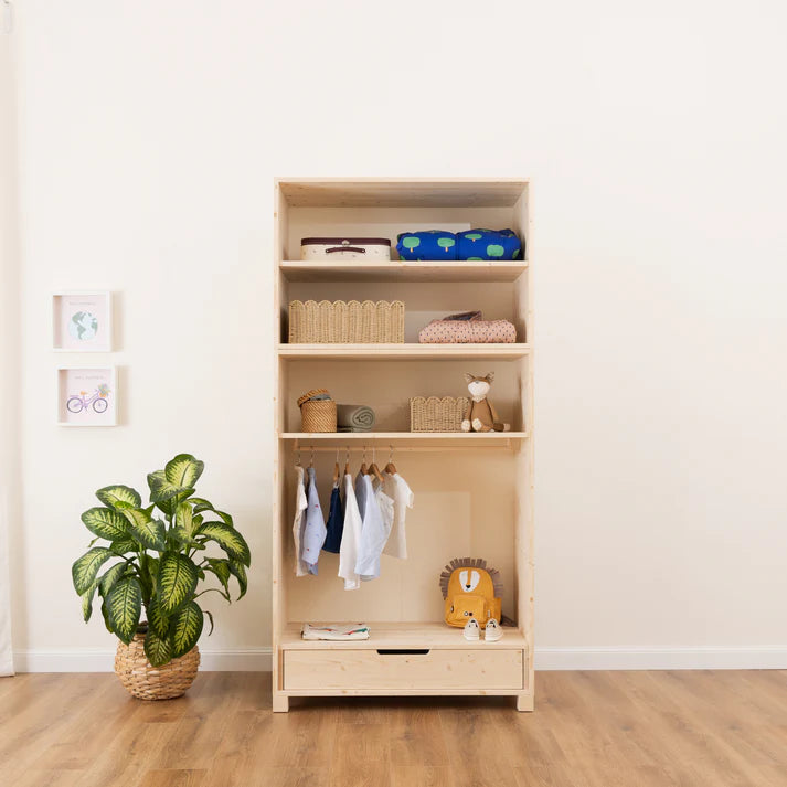 Un unico arredo in grado di supportare la loro crescita ed adattarsi a diverse esigenze. Da fasciatoio, con comodi ripiani e cassetti, si trasforma in portagiochi montessori, per poi diventare un vero e proprio modulo per l’armadio evolutivo EverGrow Maxi! Scopri il kit evolutivo