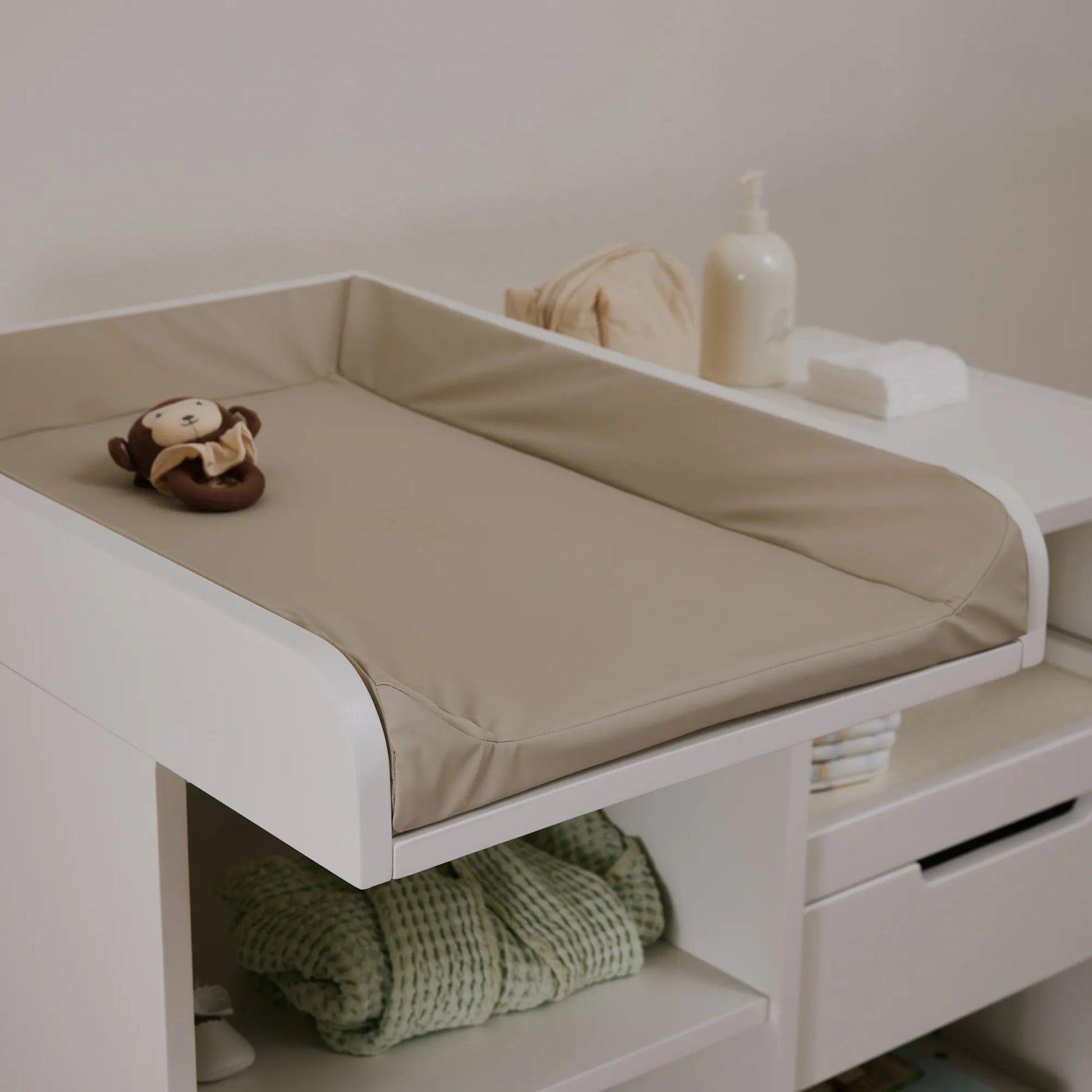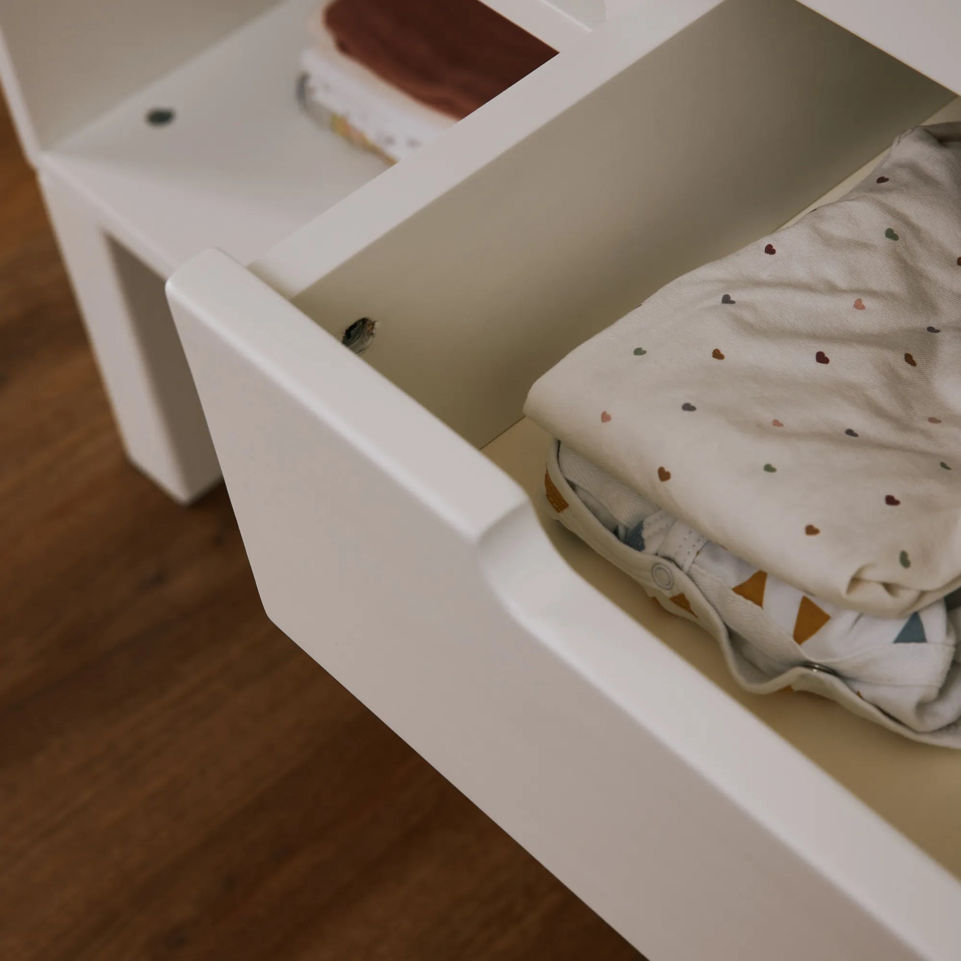 Progettato secondo i più alti standard di sicurezza, per offrire a te e al tuo bambino un arredo sicuro, spazioso e con tutti i comfort. Dotato di un ripiano e due cassetti con chiusura Soft Close, il fasciatoio EverGrow assicura tutto lo spazio necessario. Il materassino, in tessuto impermeabile, è comodo per il bambino e pratico da pulire.