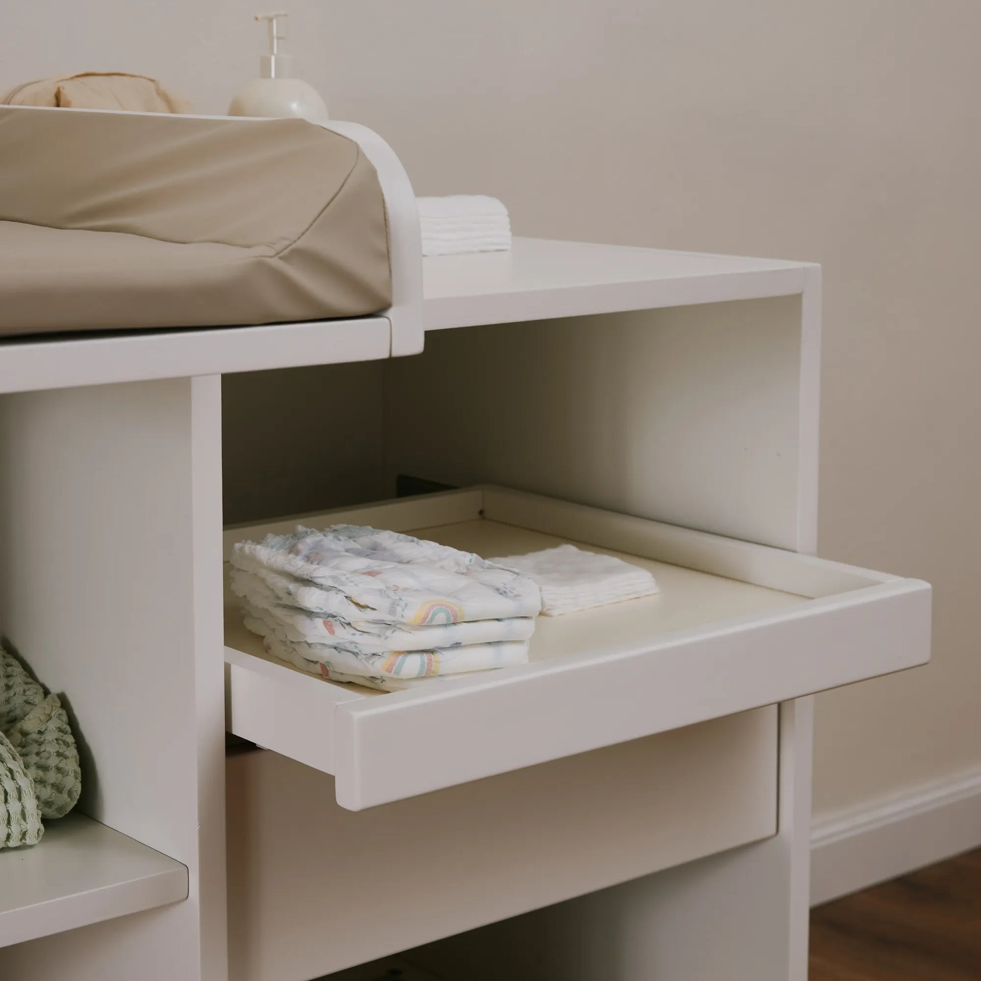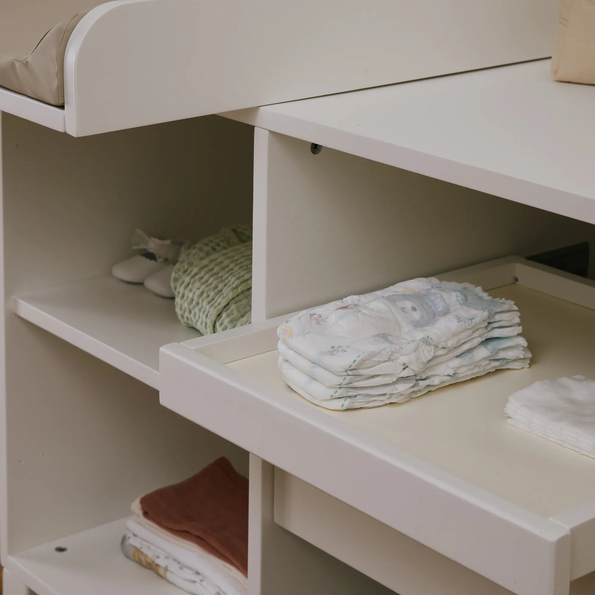 Utilizza il fasciatoio EverGrow sin dai primi cambi pannolino. Spazioso e sicuro, è il perfetto arredo per riporre tutto il necessario.