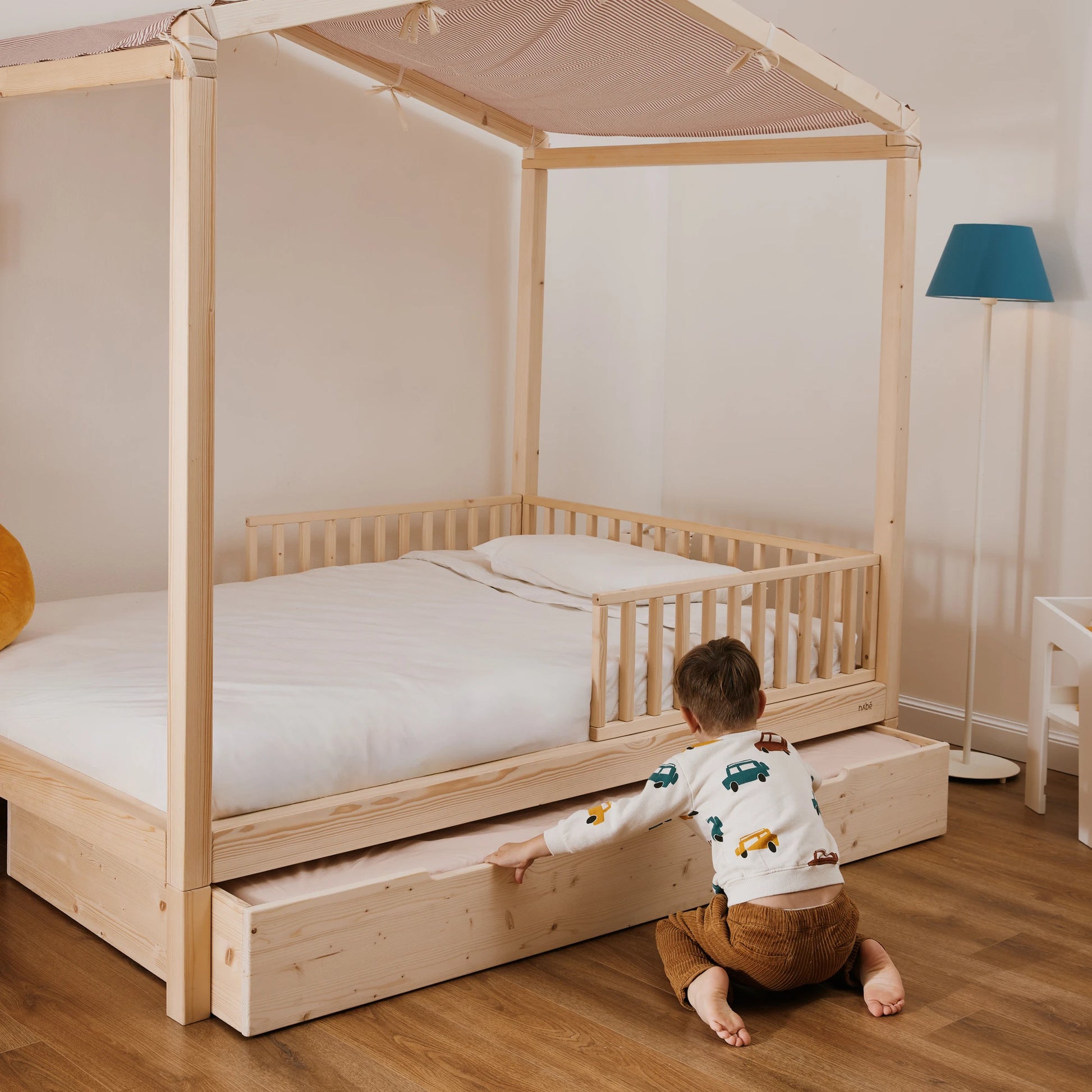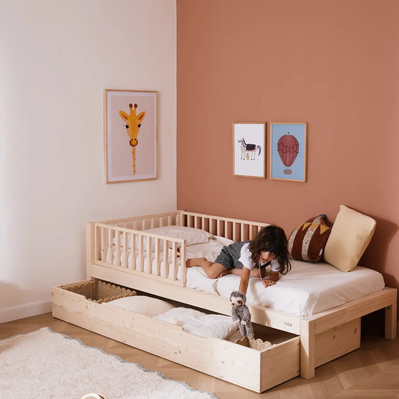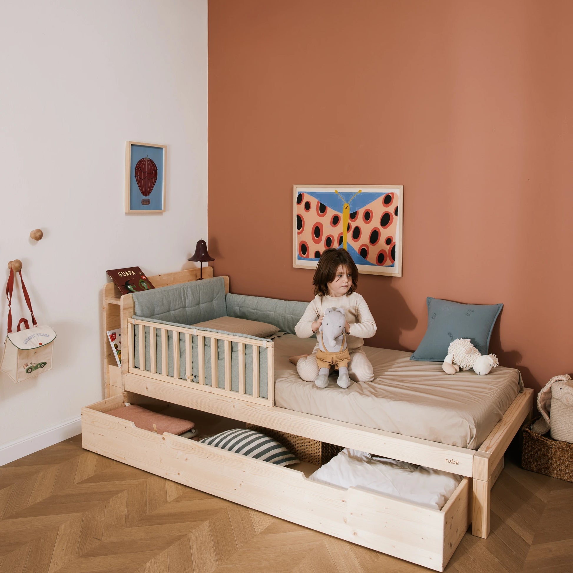 Il Cassettone estraibile di Nabè è stato progettato per poter essere integrato in ogni momento su tutta la gamma di letti zero+.