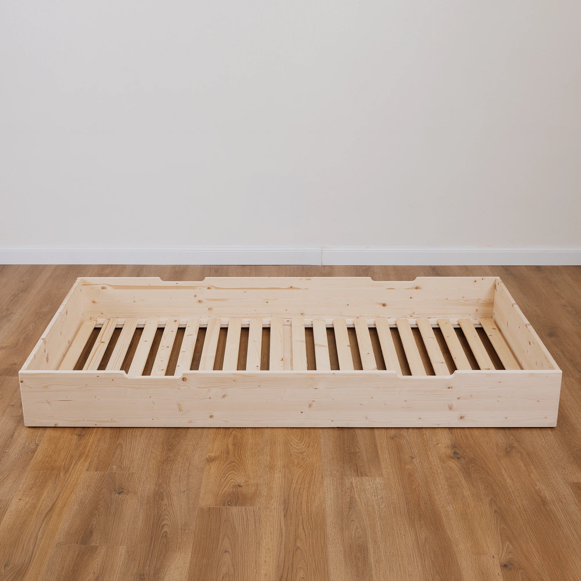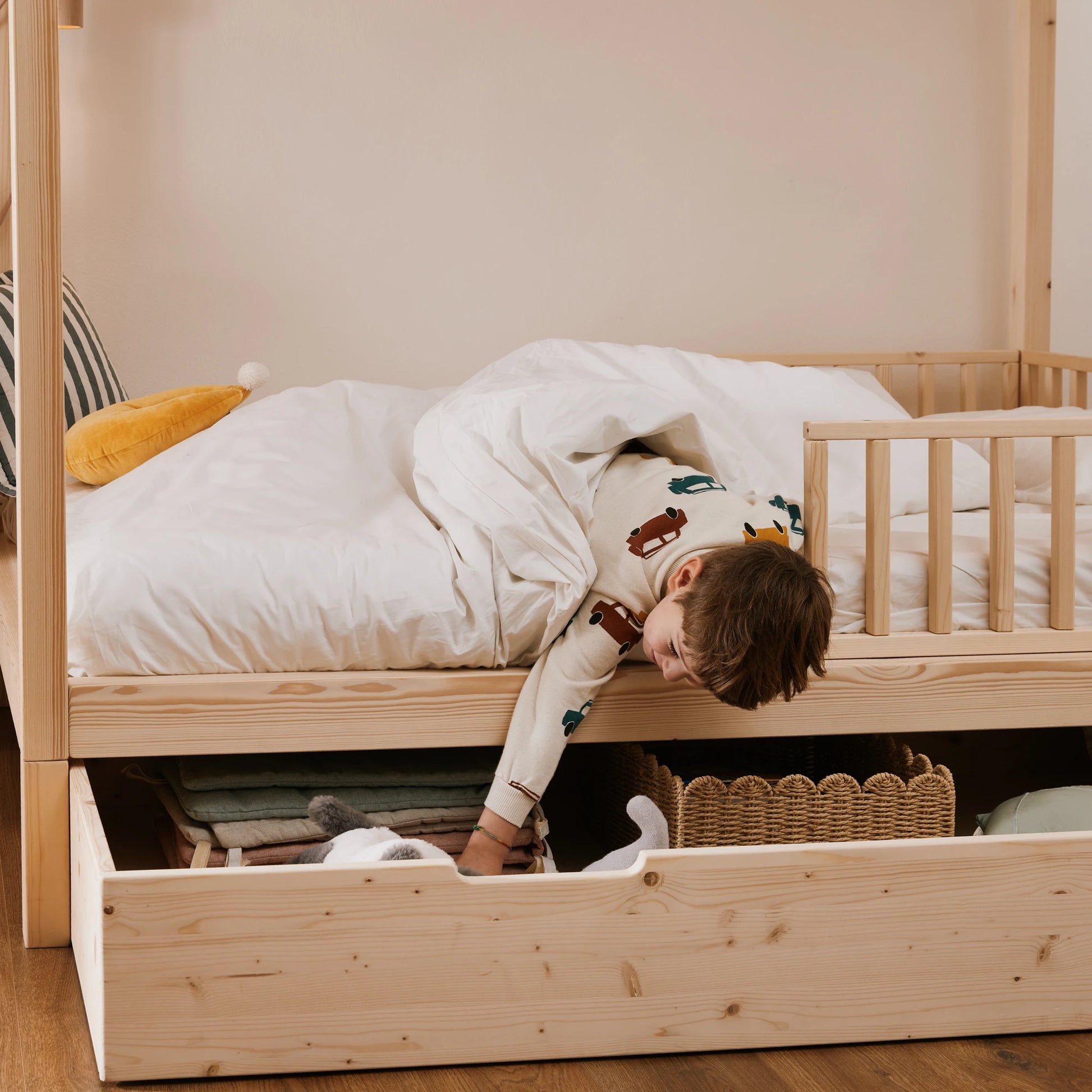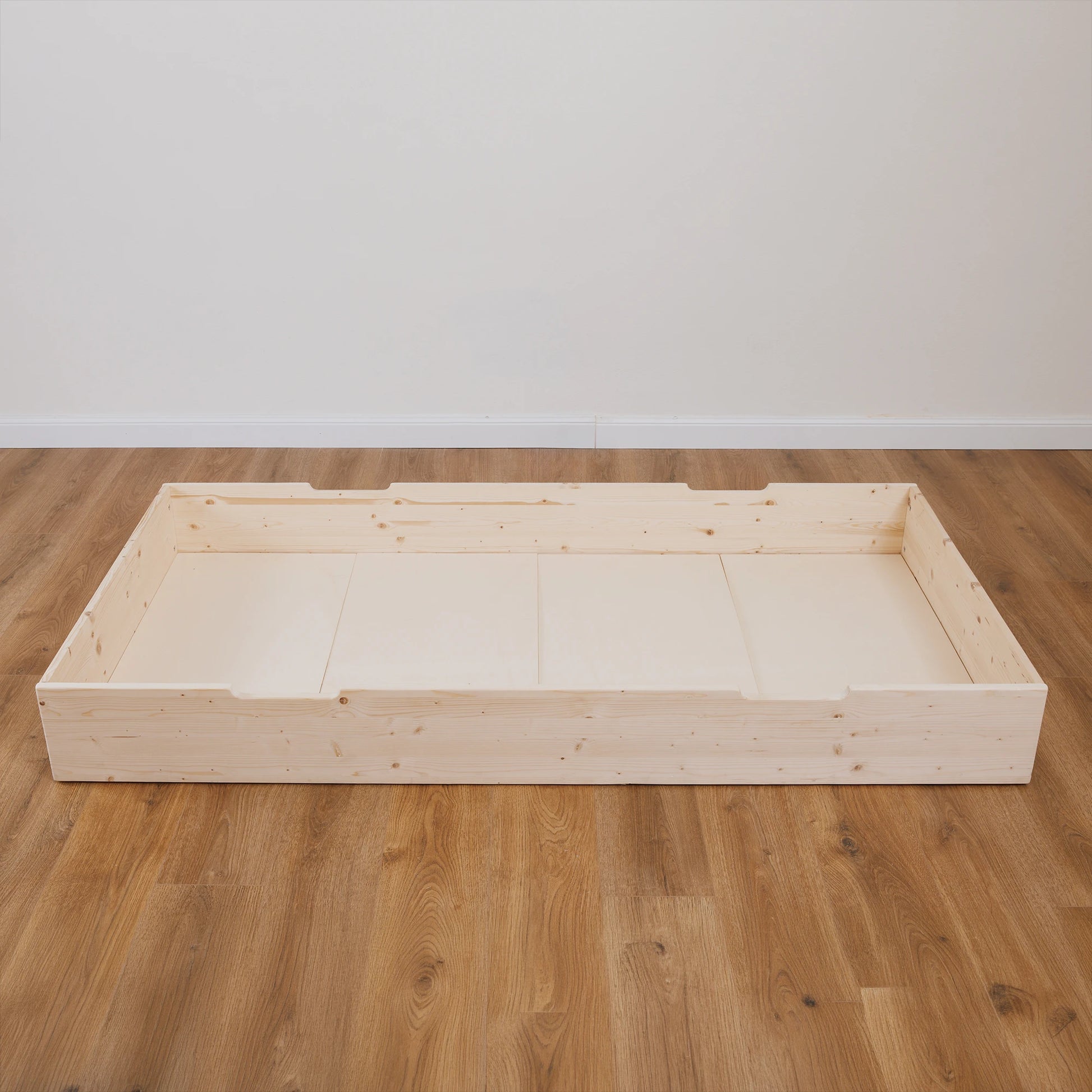 Il Cassettone estraibile per letto zero+ è realizzato in Italia con pregiato legno di abete Scandinavo, privo di formaldeide, solventi e di ogni sostanza additiva. 100% legno massello naturale selezionato, certificato PEFC per garantire all'origine un corretto ripristino della foresta.