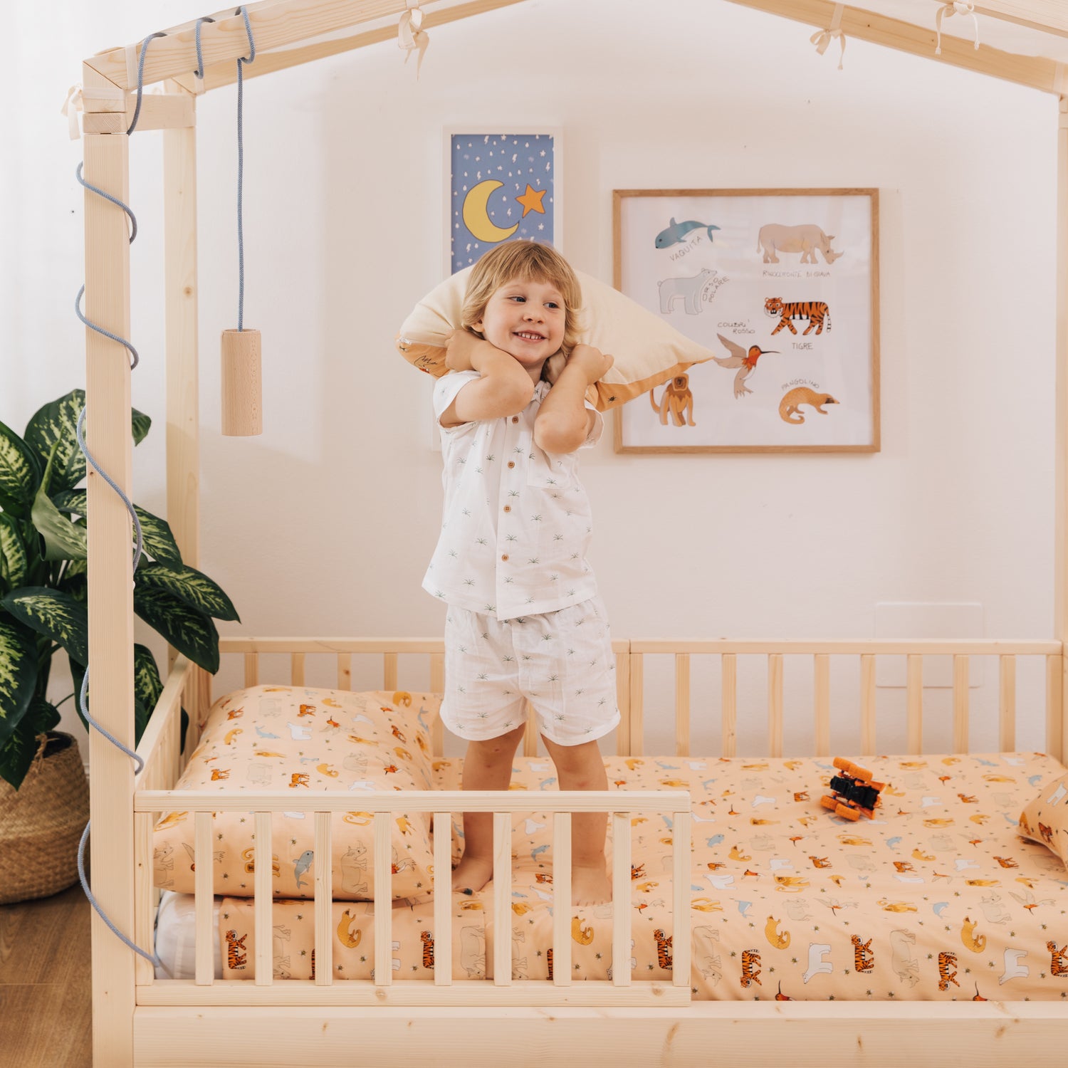 Completa il tuo letto Montessori nabè con un completo di biancheria in fresco cotone percalle.