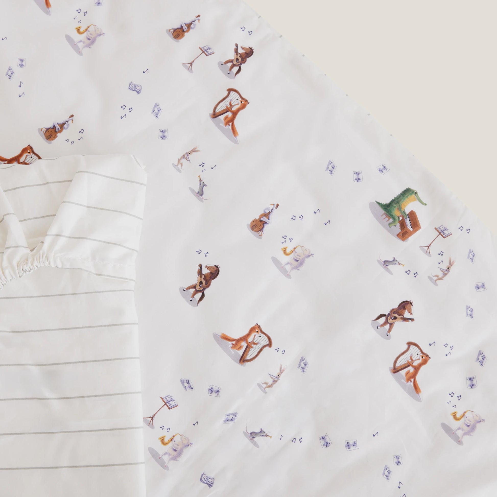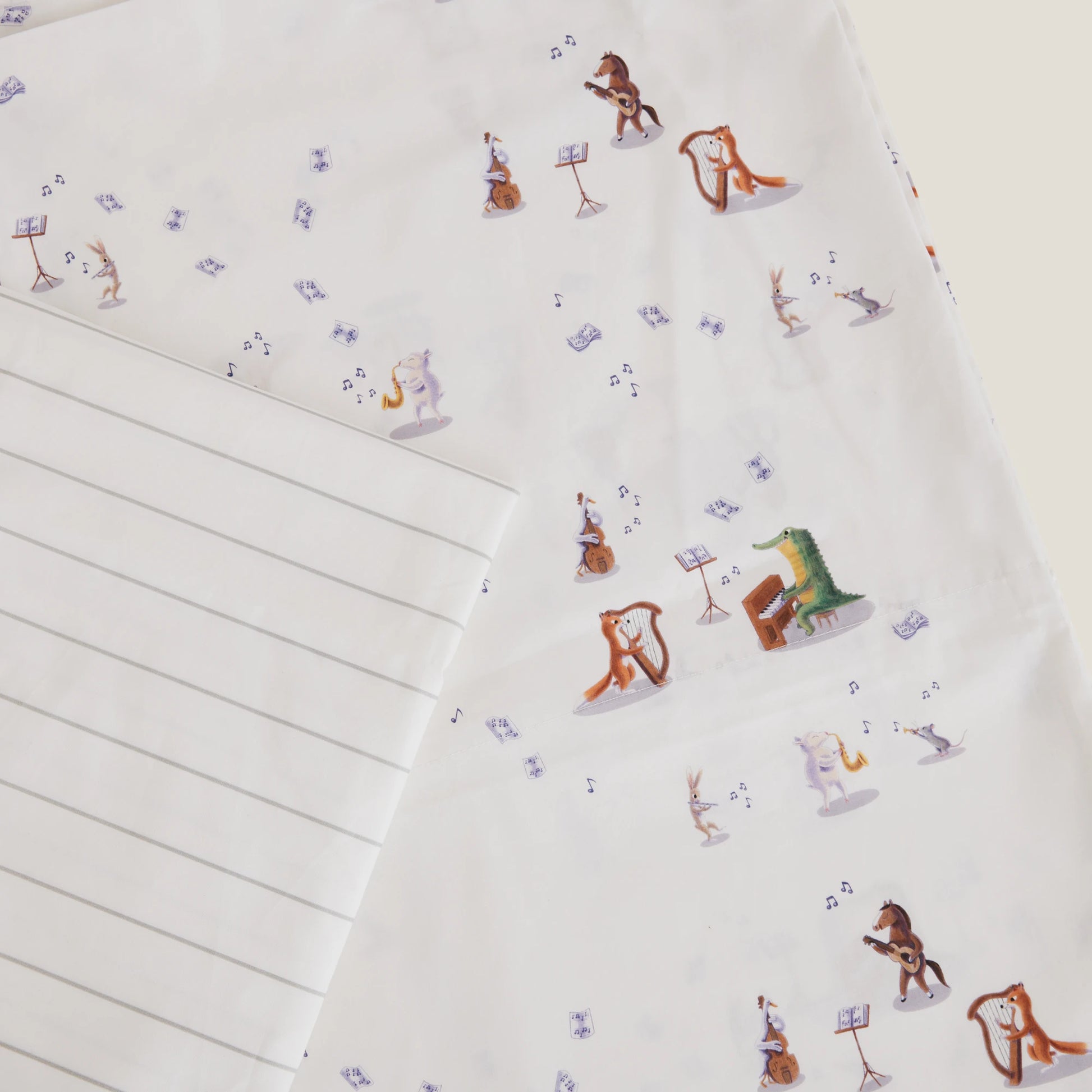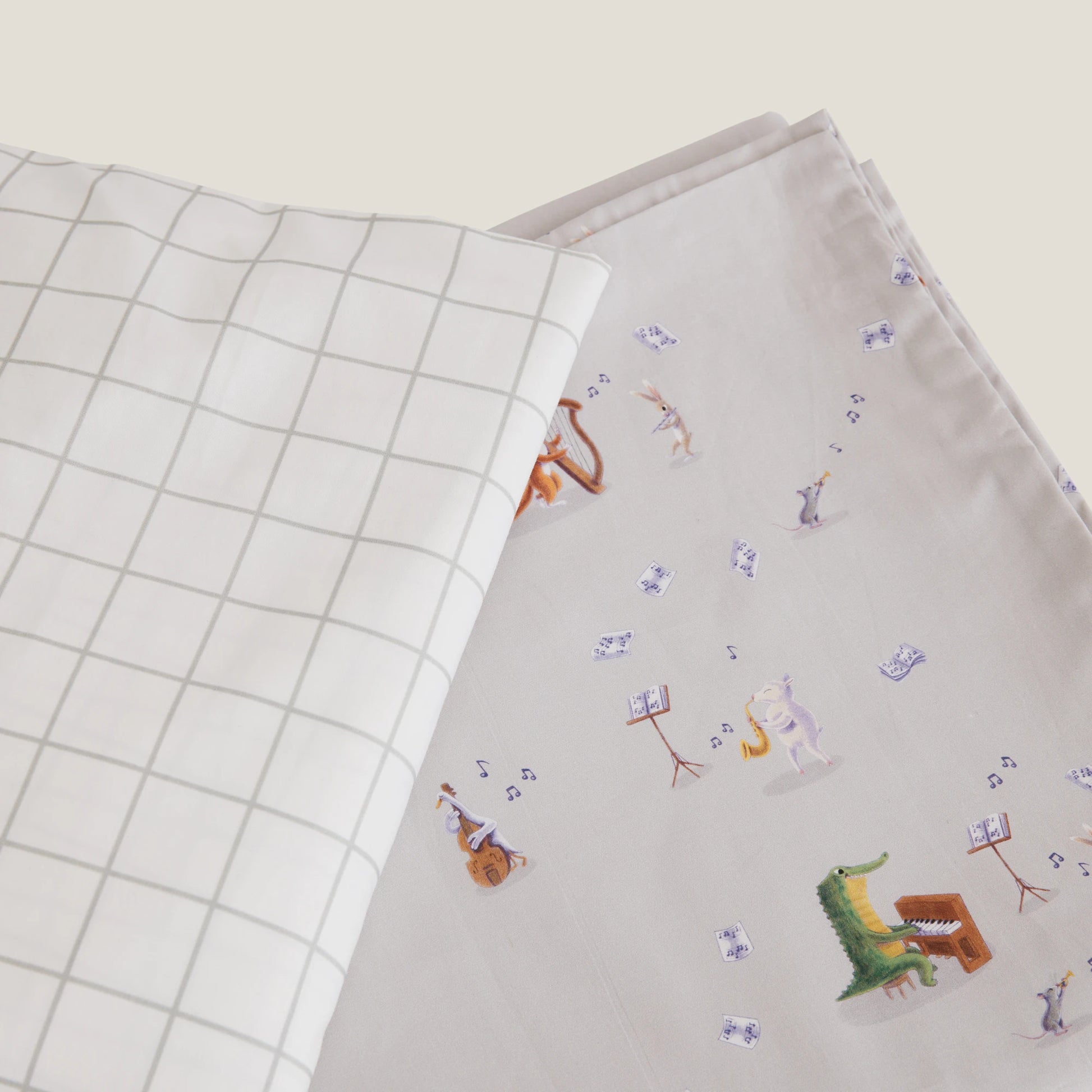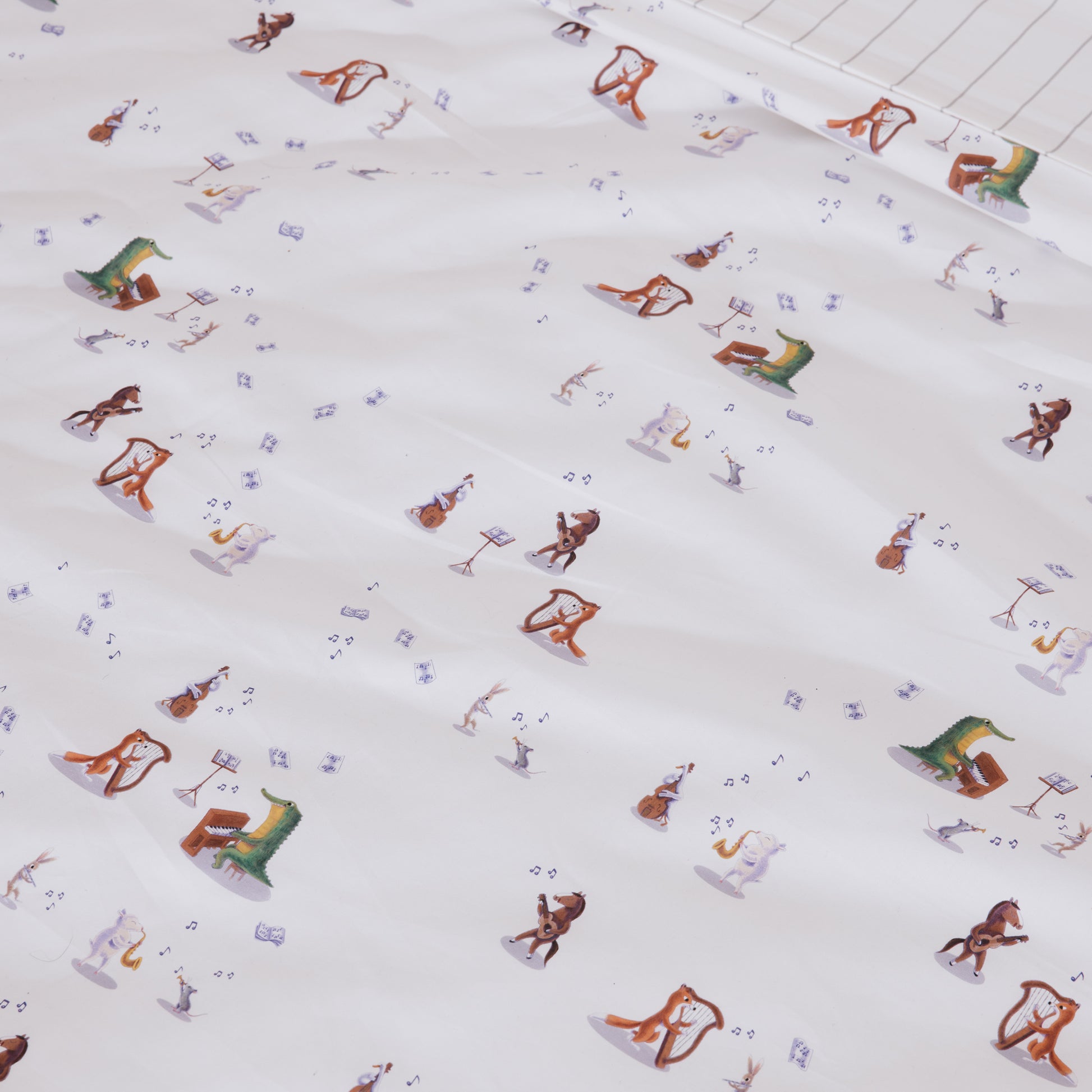 In linea con il progetto "Scopri la tua voce", queste lenzuola celebrano il rispetto dell’individualità e la fiducia nelle capacità di ciascuno. Le illustrazioni (come gli animali musicisti che rompono gli stereotipi) trasformano il letto in un luogo dove il bambino può sentirsi libero di sognare oltre le etichette, sostenuto da un ambiente che lo valorizza.