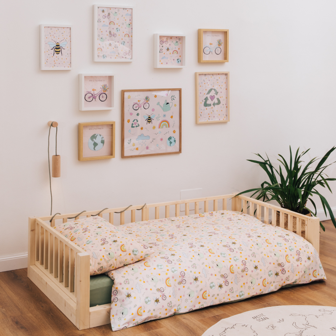 Le stampe “Ama il tuo pianeta” completano il tuo letto zero+ e la biancheria nabè in morbido percalle.