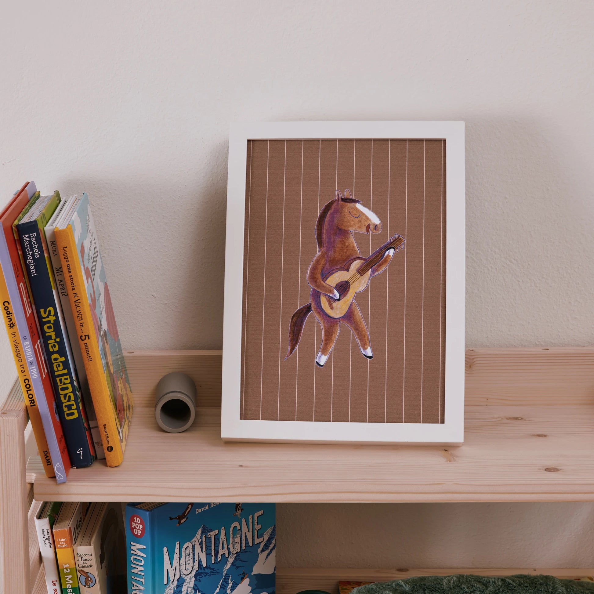 Stampate digitalmente su carta bianca leggermente goffrata da 300 grammi, le stampe Scopri la tua voce valorizzano ogni illustrazione con una resa materica elegante e naturale. I colori restano brillanti nel tempo, per accompagnare i bambini giorno dopo giorno.
